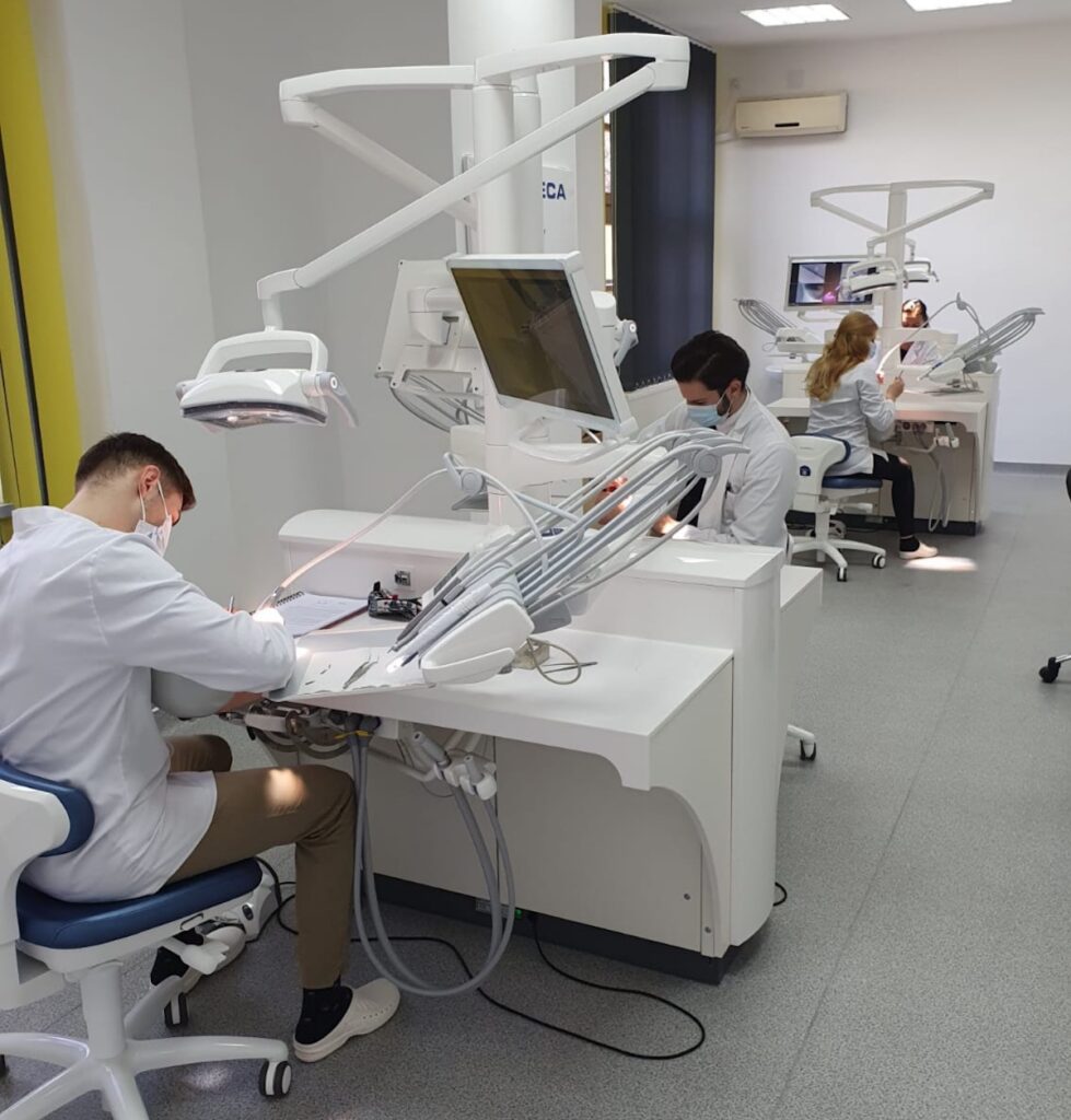 Recent, un nou spațiu didactic a îmbogățit baza materială ce asigură studenților cele mai moderne instrumente de practică: noul laborator de materiale dentare, cu un design personalizat având drept inspirație conceptele de tehnologie, digitalizare și medicină dentară a viitorului, a fost edificat în parteneriat cu grupul de clinici DENT ESTET. Structurat sub forma mai multor ateliere de lucru preclinice și a unei zone de transpunere a cunoștințelor preclinice direct în zona clinică, laboratorul este perfect adaptat nevoilor studenților.