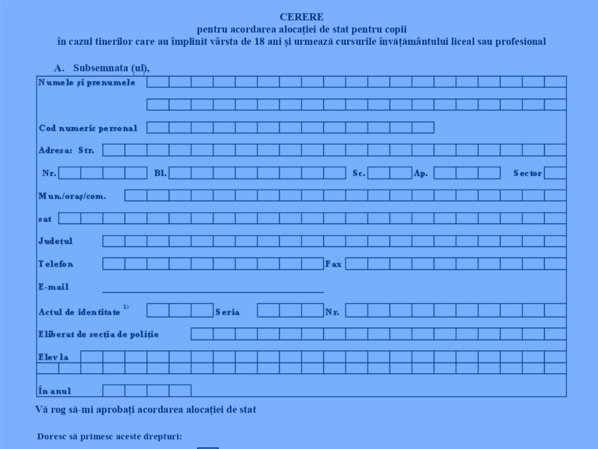 „Cererile pentru alocația de stat destinate elevilor care au împlinit 18 ani vor fi depuse la I.S.J. Covasna – Compartiment Informatizare – (…), atât în scris, cât și în format electronic, pe Registrul On-Line, până la data de 20 a fiecărei luni (dacă nu există cereri, se transmite fișierul necompletat)