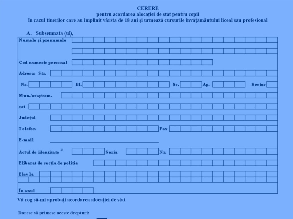 Inspectoratul Școlar Județean Covasna a anunțat că cererile pentru alocația de stat destinate elevilor care au împlinit 18 ani vor fi depuse la inspectorat de către unitățile de învățământ, până la data de 20 a fiecărei luni, dar în luna septembrie termenul de transmitere se prelungește până la data de 25. Descarcă mai jos, în articol, modelul de cerere.
