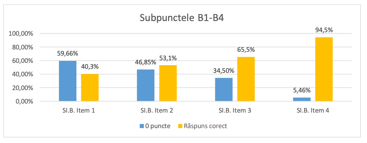 „Observăm, în schimb că la inferențe doar 41,51% dintre elevi au răspuns total corect. E vorba de Itemul 5 de la partea I A și aici, poate dacă ministerul va oferi niște date mai clare, vom putea înțelege dacă elevii noștri fac diferite tipuri de inferențe, itemul acesta 5 vizează deja deducții, trecem la un nivel mai avansat”, spune Bogdan Ratiu.
