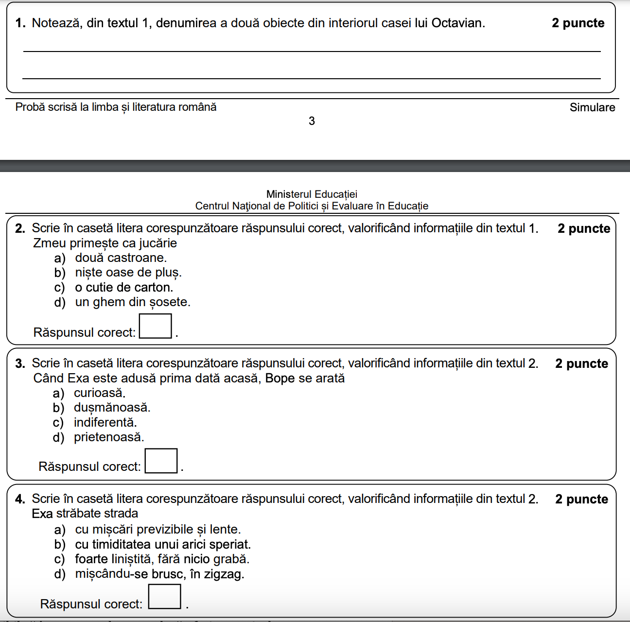 - Plecând de la textul lui Liviu Papadima, Itemul 8 îi întreabă pe elevi dacă „cred că există mai multe feluri de a descifra lumea în care trăim?” Subiectul aștepta un răspuns motivat în 50-100 de cuvinte.