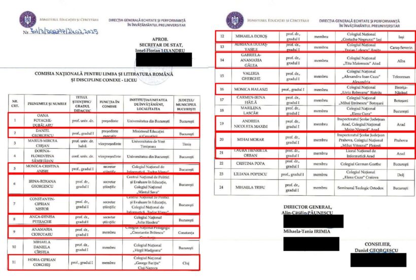 Este vorba despre profesori din mediul universitar, din centrul național de evaluare și curriculum, dar și din licee de elită din țară, numiți prin ordin al ministrului Educației. Situația ridică semne de întrebare privind separarea etapelor de elaborare și avizare a documentului curricular.
