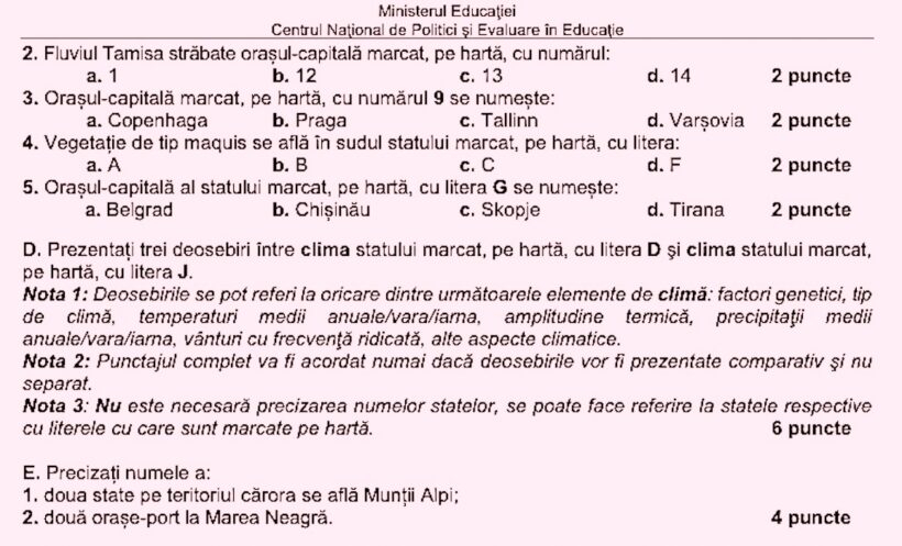 Elevii care au dat proba la alegere a profilului și a specializării la Geografie au avut de rezolvat varianta 1, la fel ca la proba de marți.