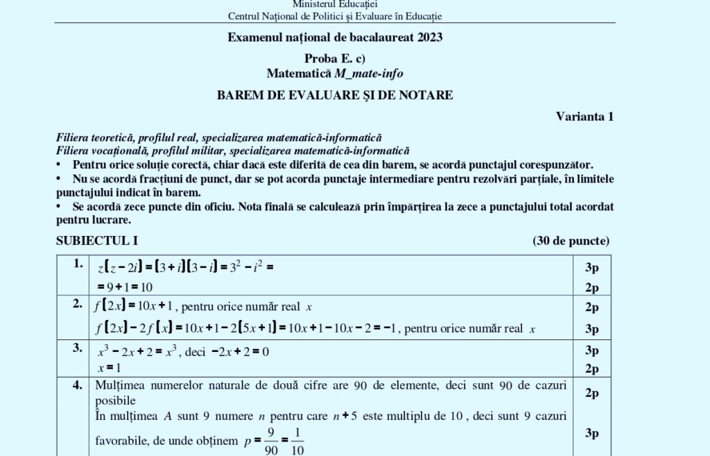 - BAC 2023 Baremul de corectare de la Matematică – Științe ale naturii a fost publicat de Ministerul Educației