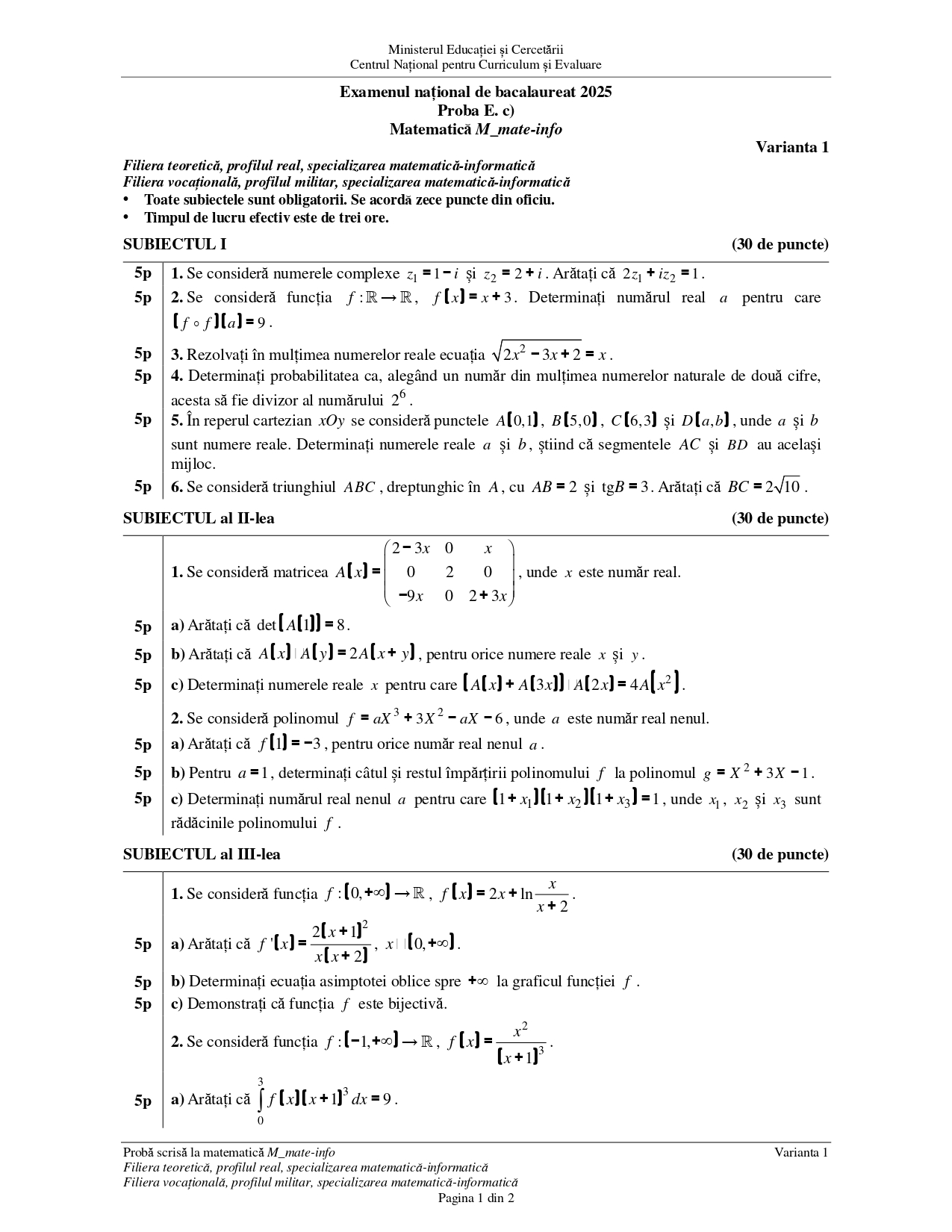 Proba obligatorie a profilului din cadrul examenului național de BAC 2025 a fost susținută, miercuri, 11 iunie, de absolvenții de liceu. Cei de la filiera teoretică, profil real (specializările mate-info, științele naturii), filiera vocațională (militar) și cea tehnologică au dat examenul la Matematică.