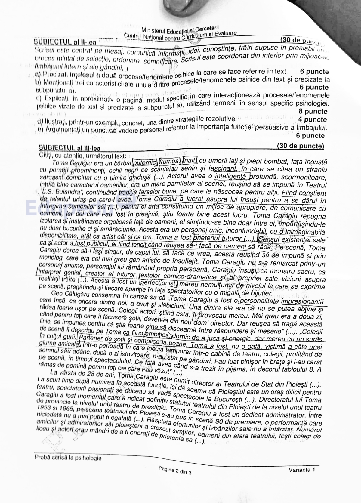 - Nota redacției: Însemnările de pe subiecte aparțin candidaților și nu reprezintă neapărat variantele corecte de răspuns.