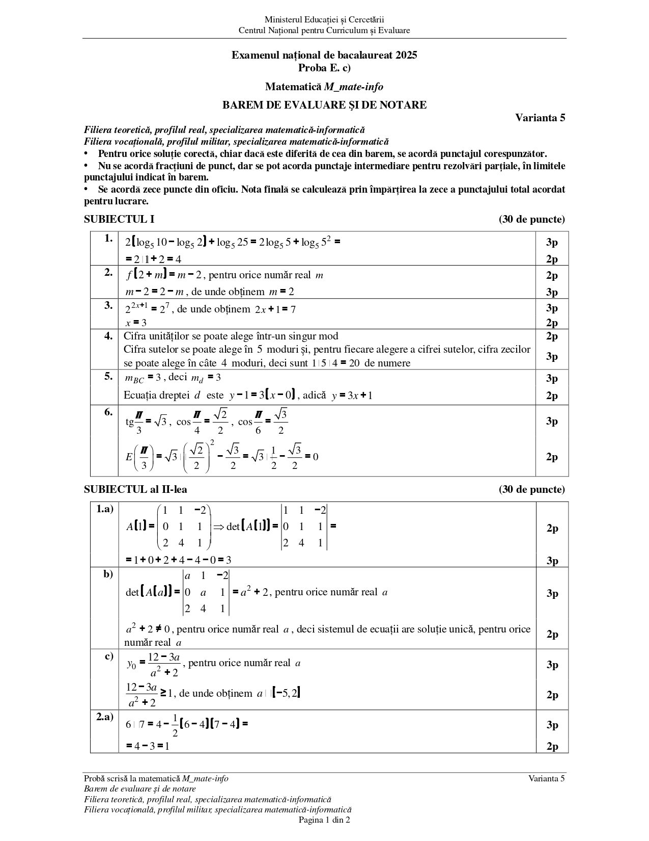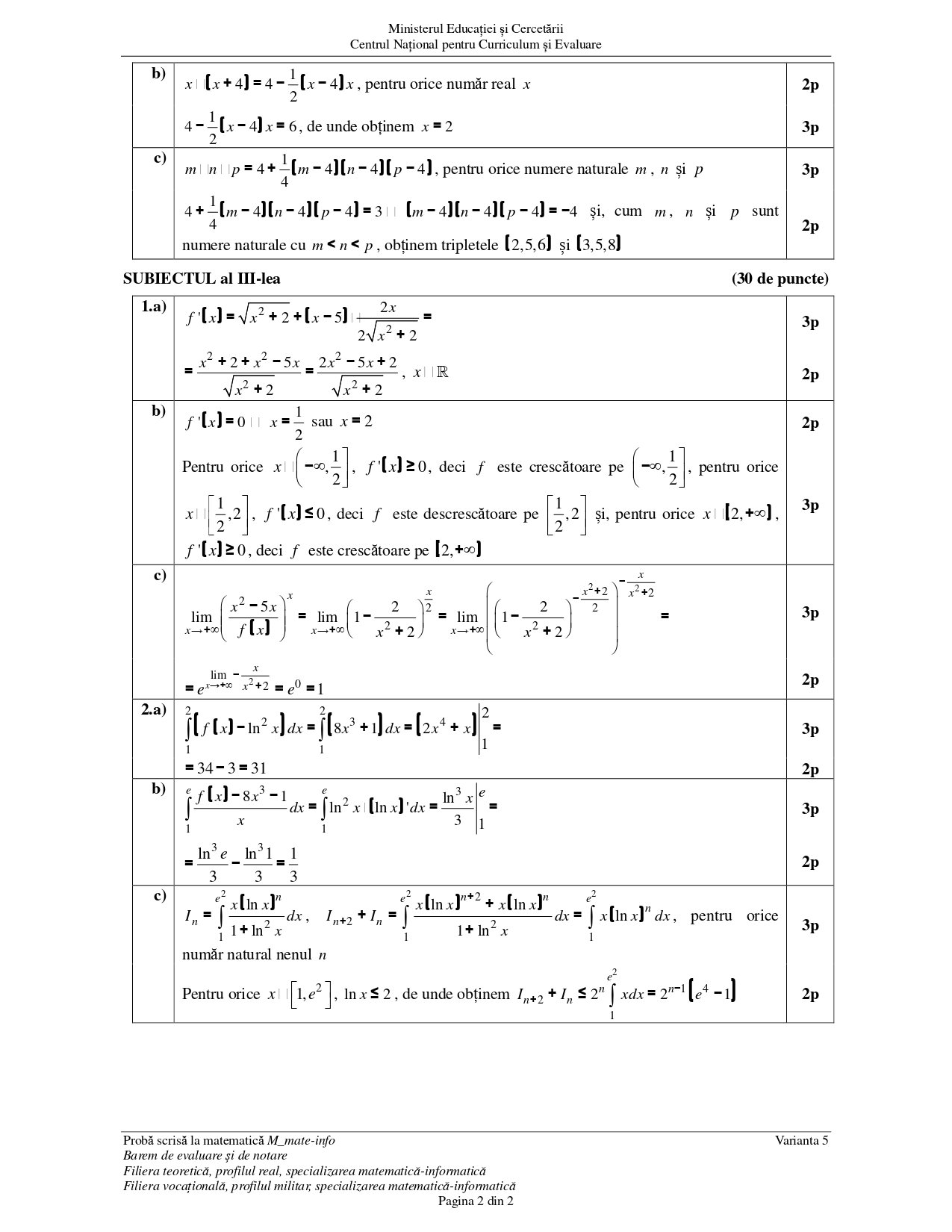 Baremul pentru varianta de rezervă la Matematică – specializarea mate-info