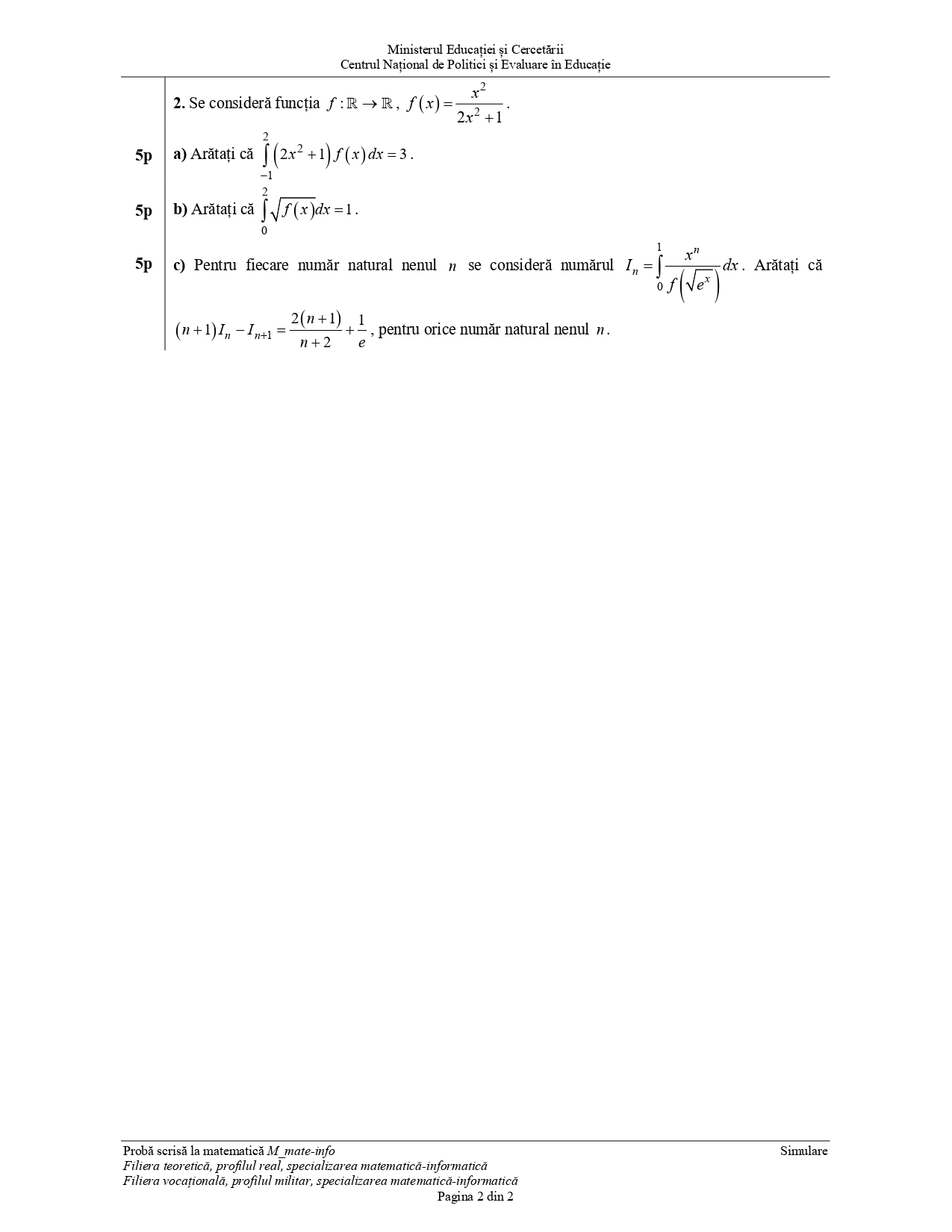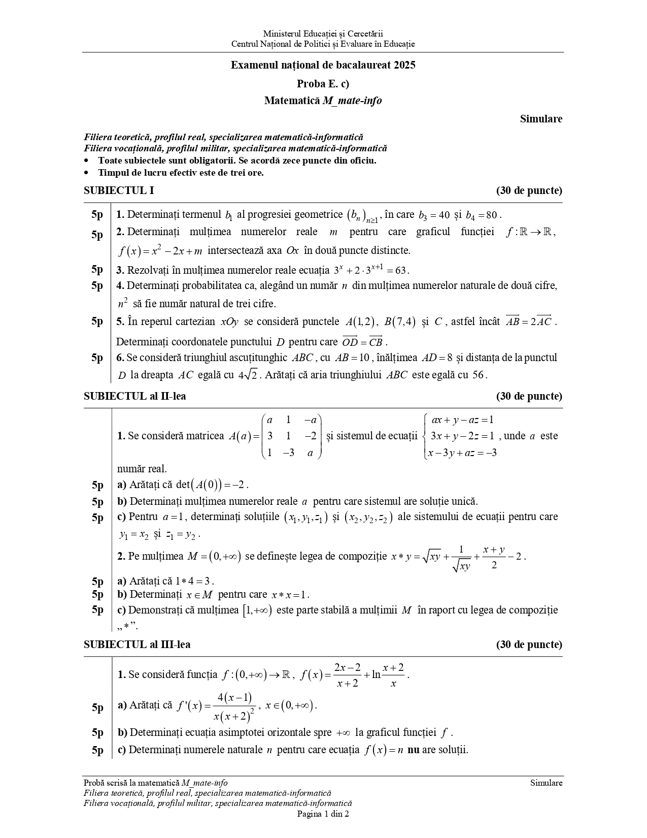 Subiectul pentru specializarea mate-info: