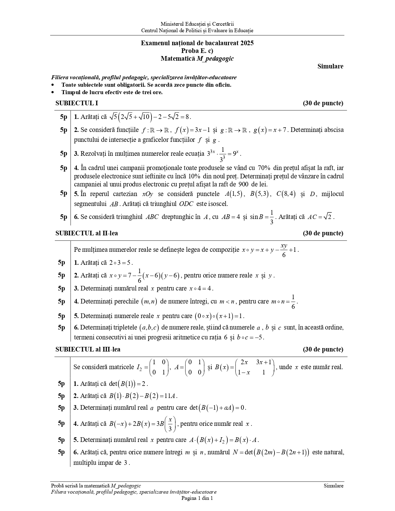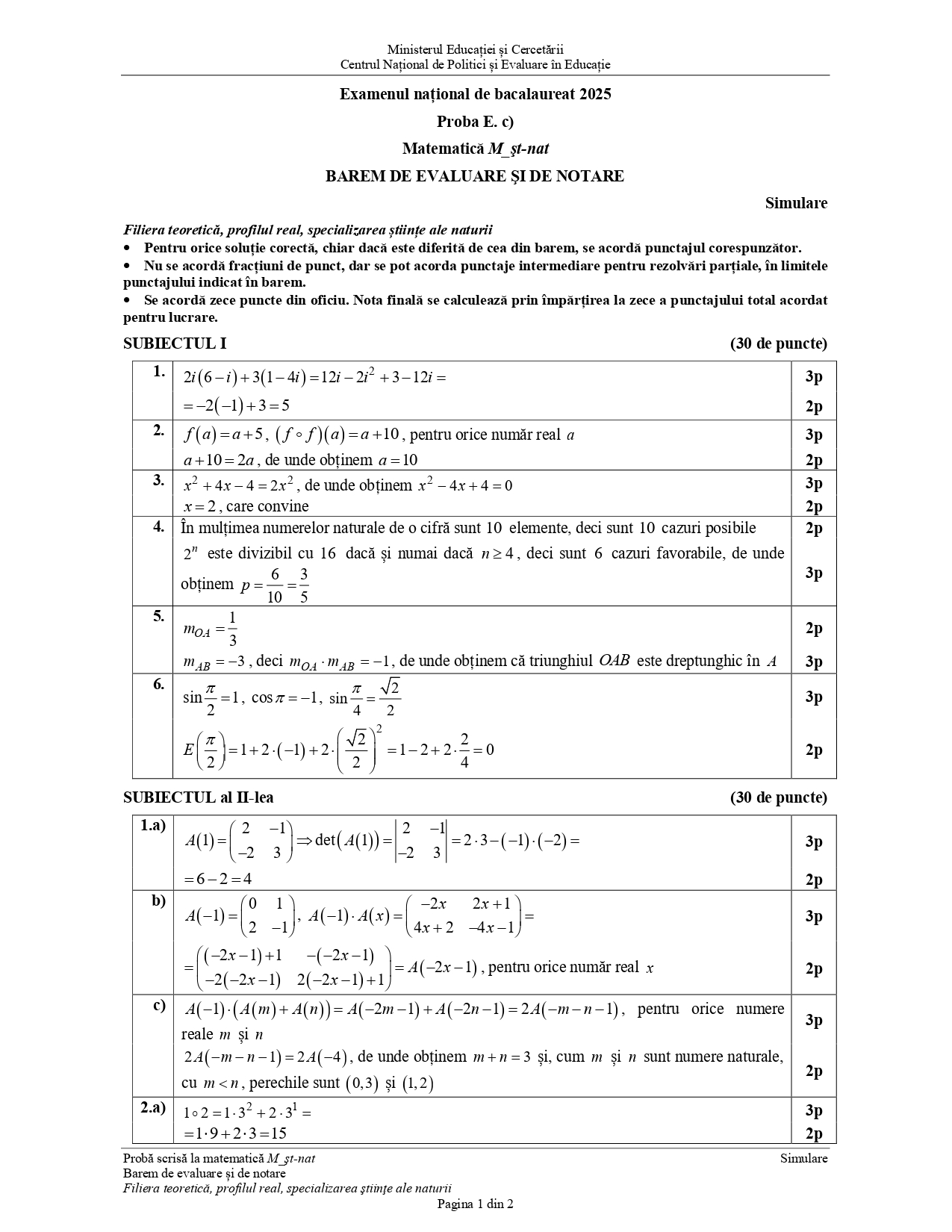 Subiectele și baremul de la proba scrisă obligatorie a profilului au fost publicate de Ministerul Educației. Simularea la Matematică a fost susținută de elevii clasei a XII-a de la profil real, de cei din liceele tehnologice, precum și de către cei cu specializarea învățători-educatoare.