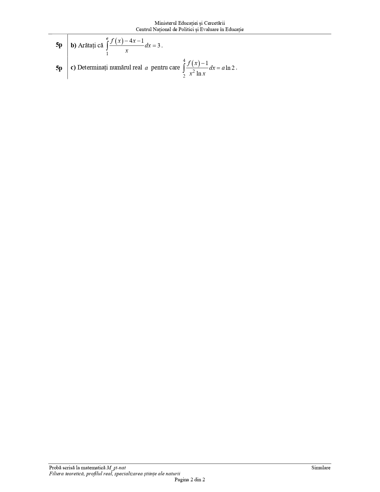 24 martie 2025: Limba și literatura română – probă scrisă25 martie 2025: Proba obligatorie a profilului – probă scrisă- 26 martie 2025: Proba la alegere a profilului și specializării – probă scrisă