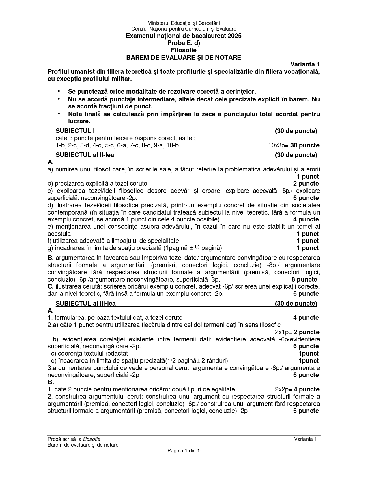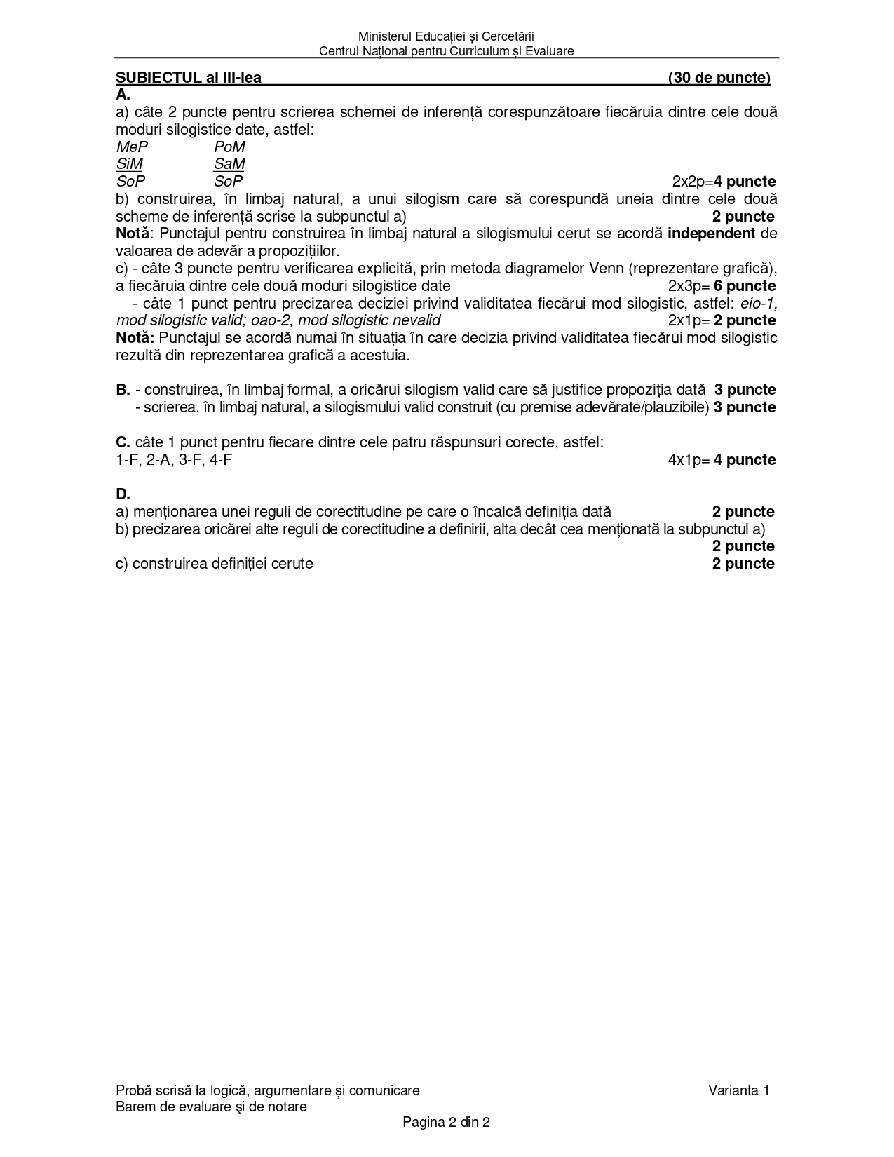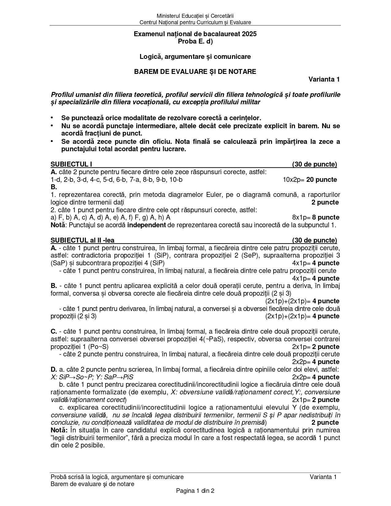 - Barem de corectare – Logică, argumentare și comunicare BAC 2025:
