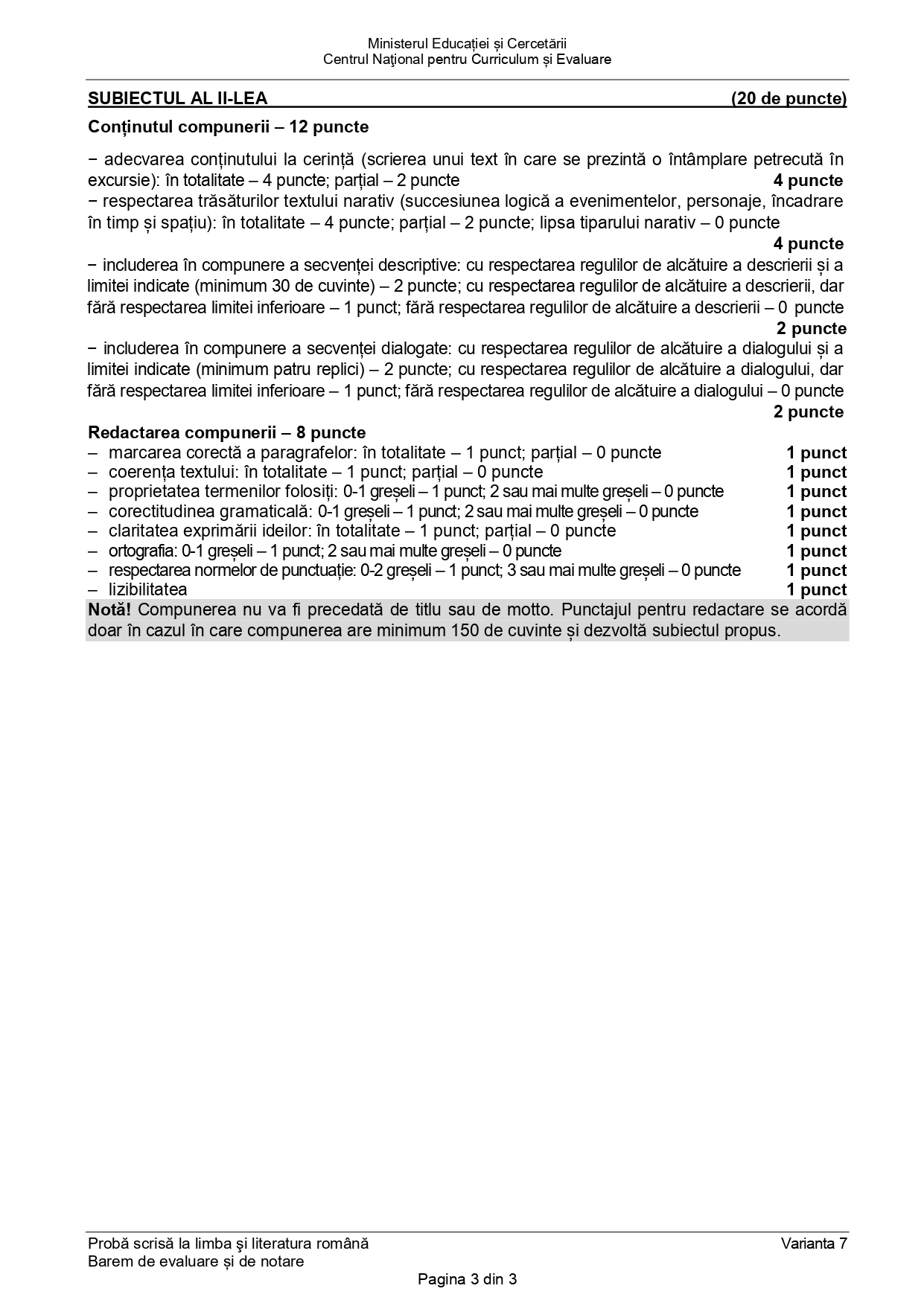 Ministerul Educației a publicat la ora 15:00 baremul de corectare de la proba de Limba Română de la Evaluarea Națională 2025. Luni, 23 iunie, absolvenții clasei a VIII-a au susținut proba scrisă la Limba și literatura română. Descarcă mai jos baremul de corectare și subiectele.