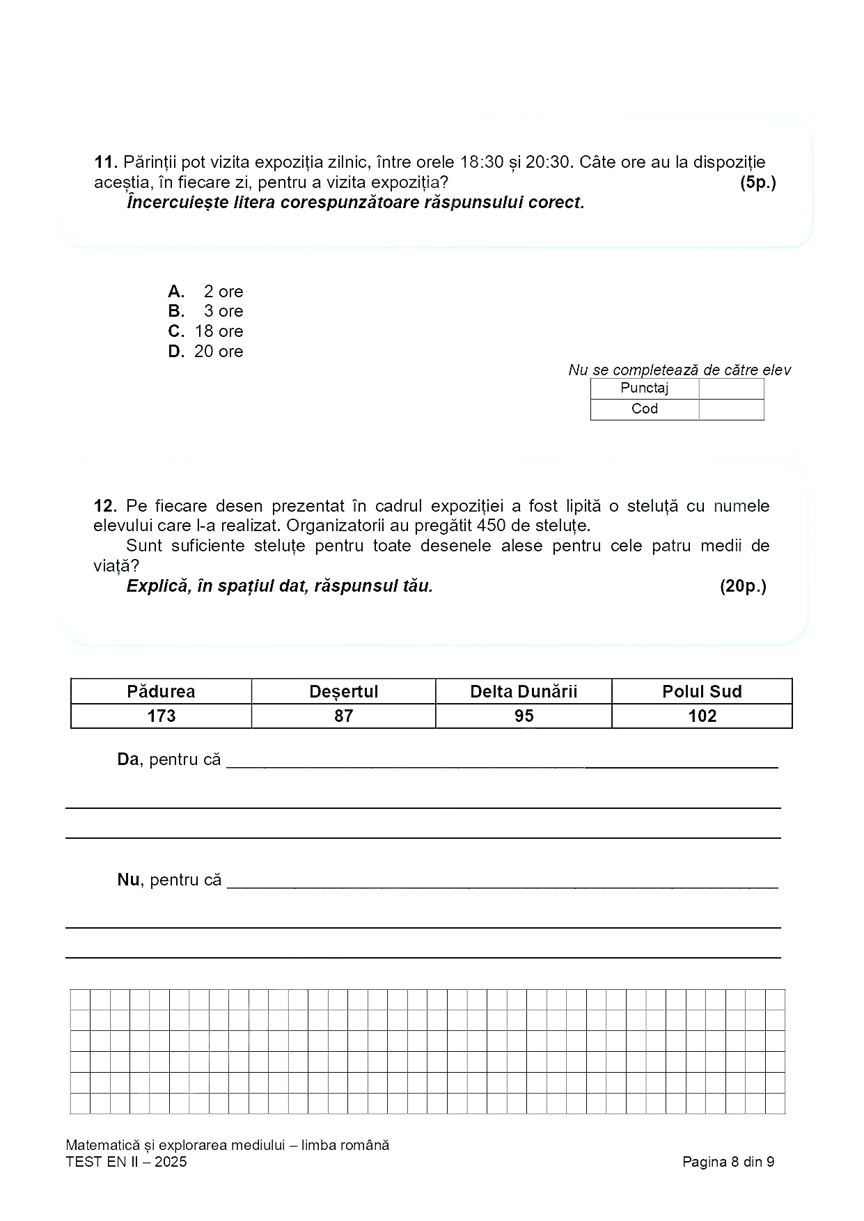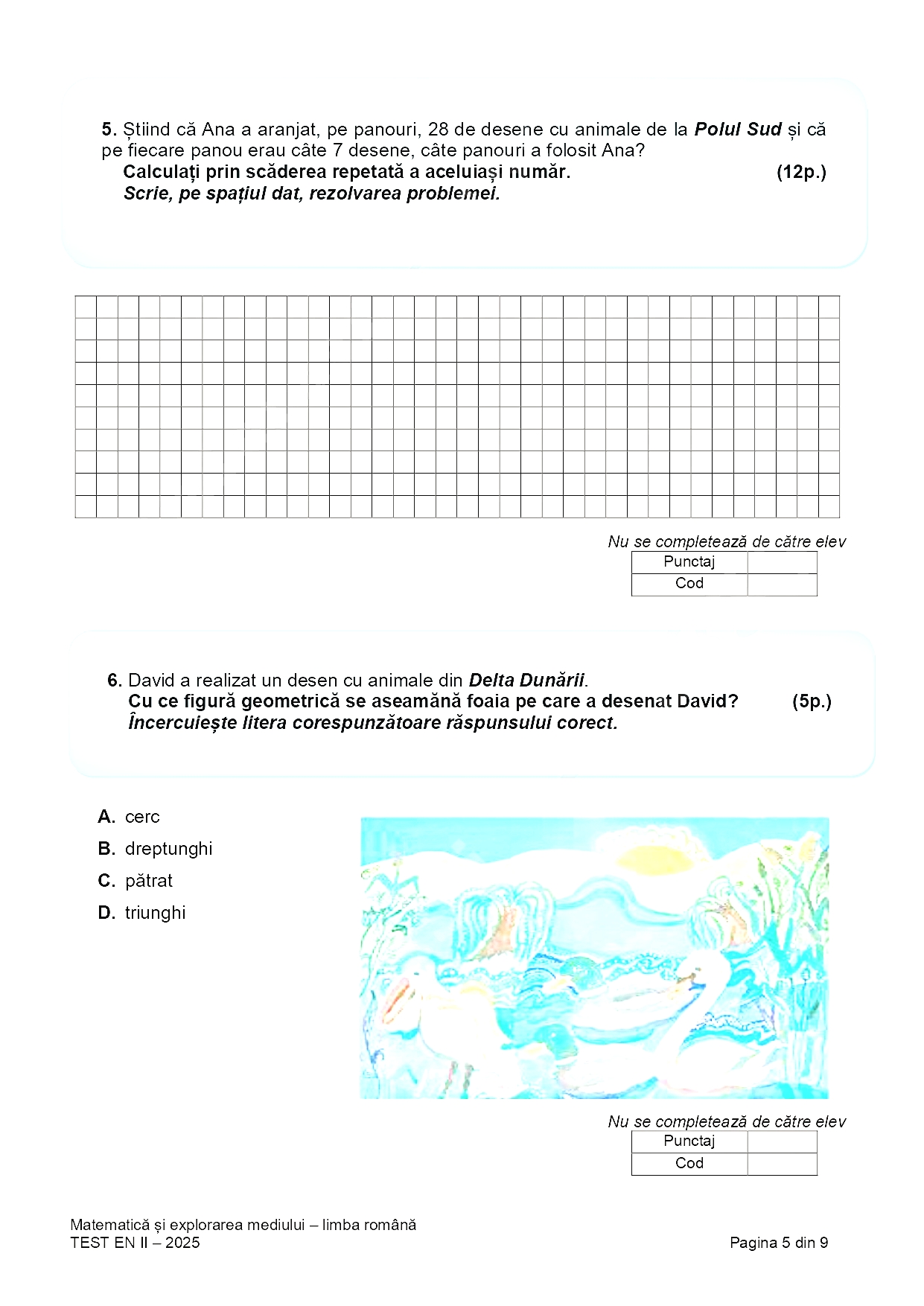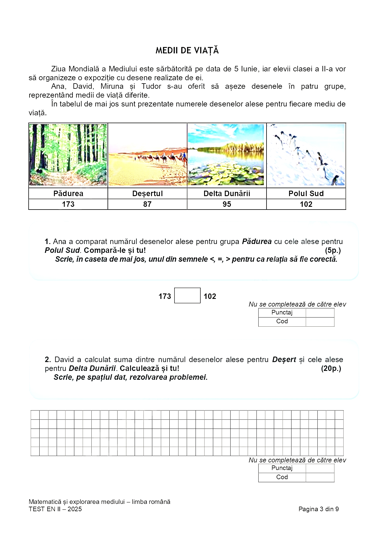 Subiectele pe care le-au primit elevii la Matematică și Explorarea Mediului: