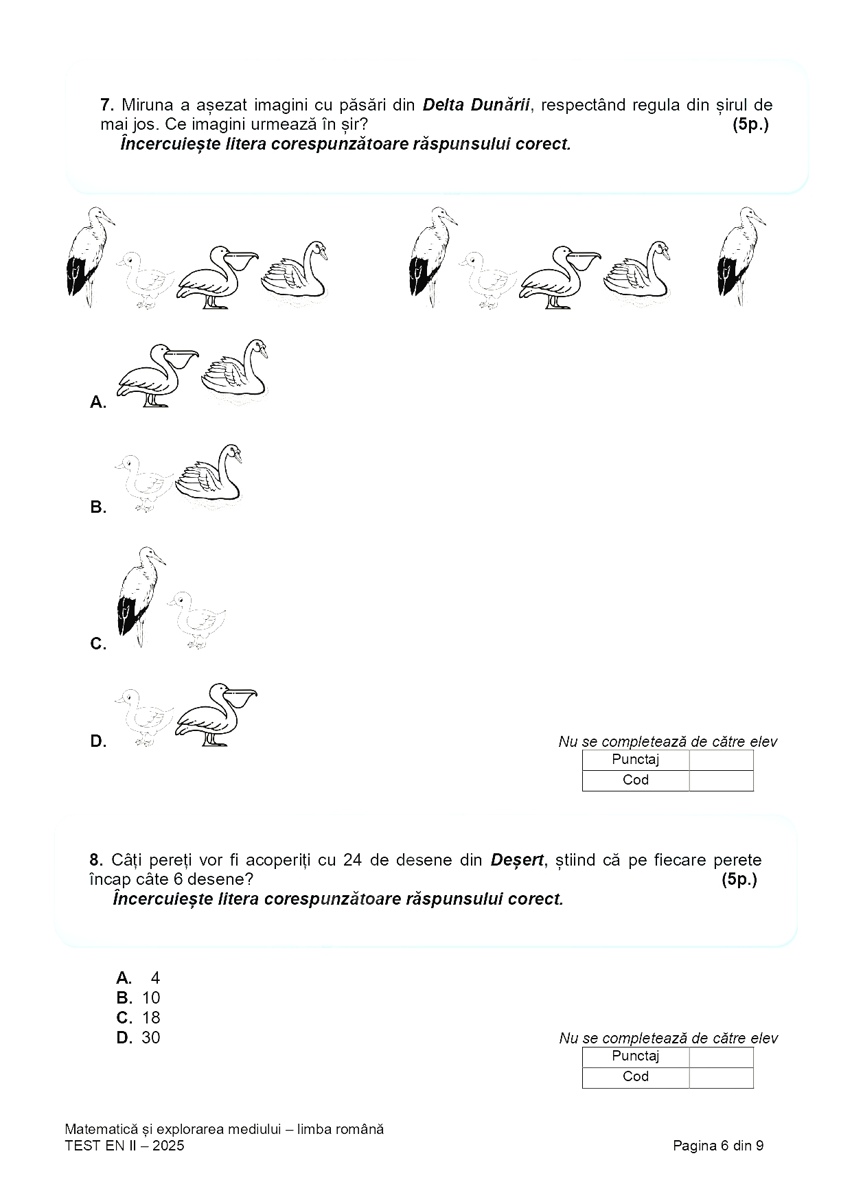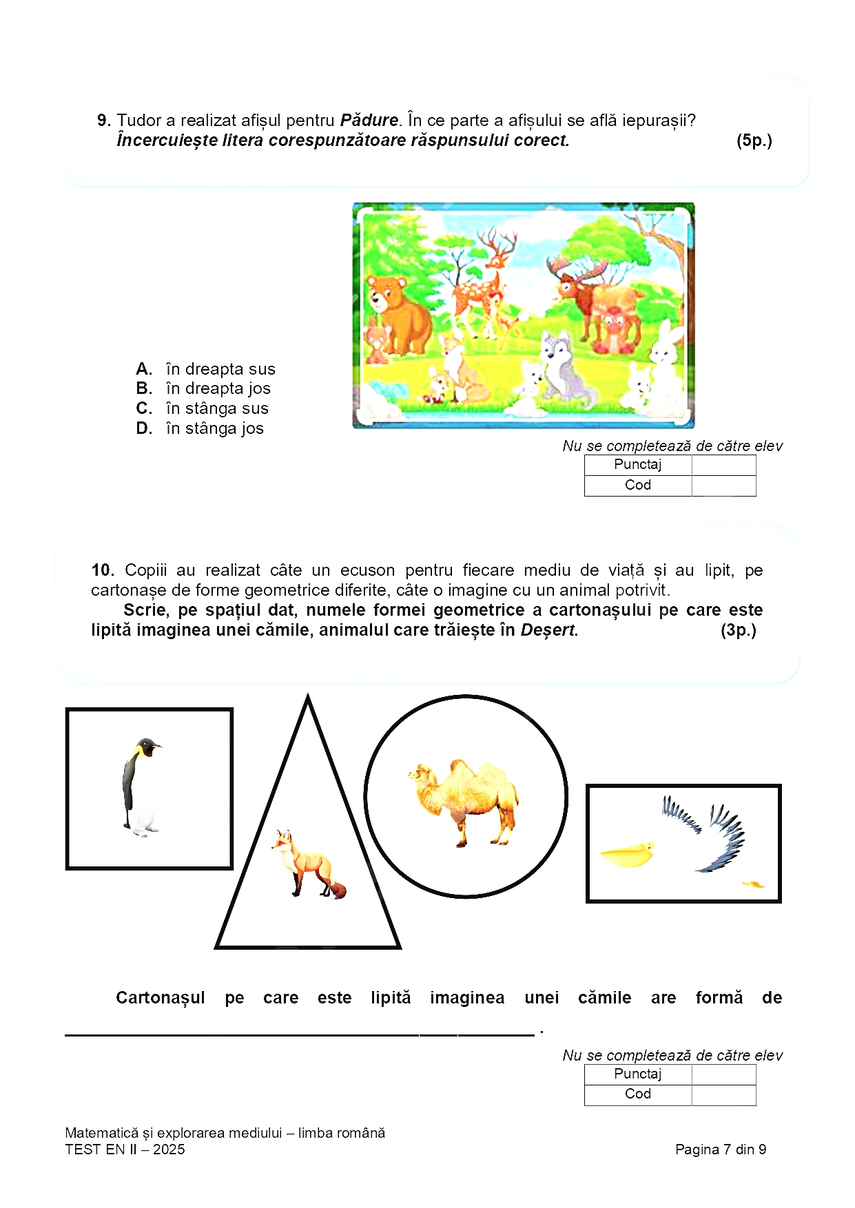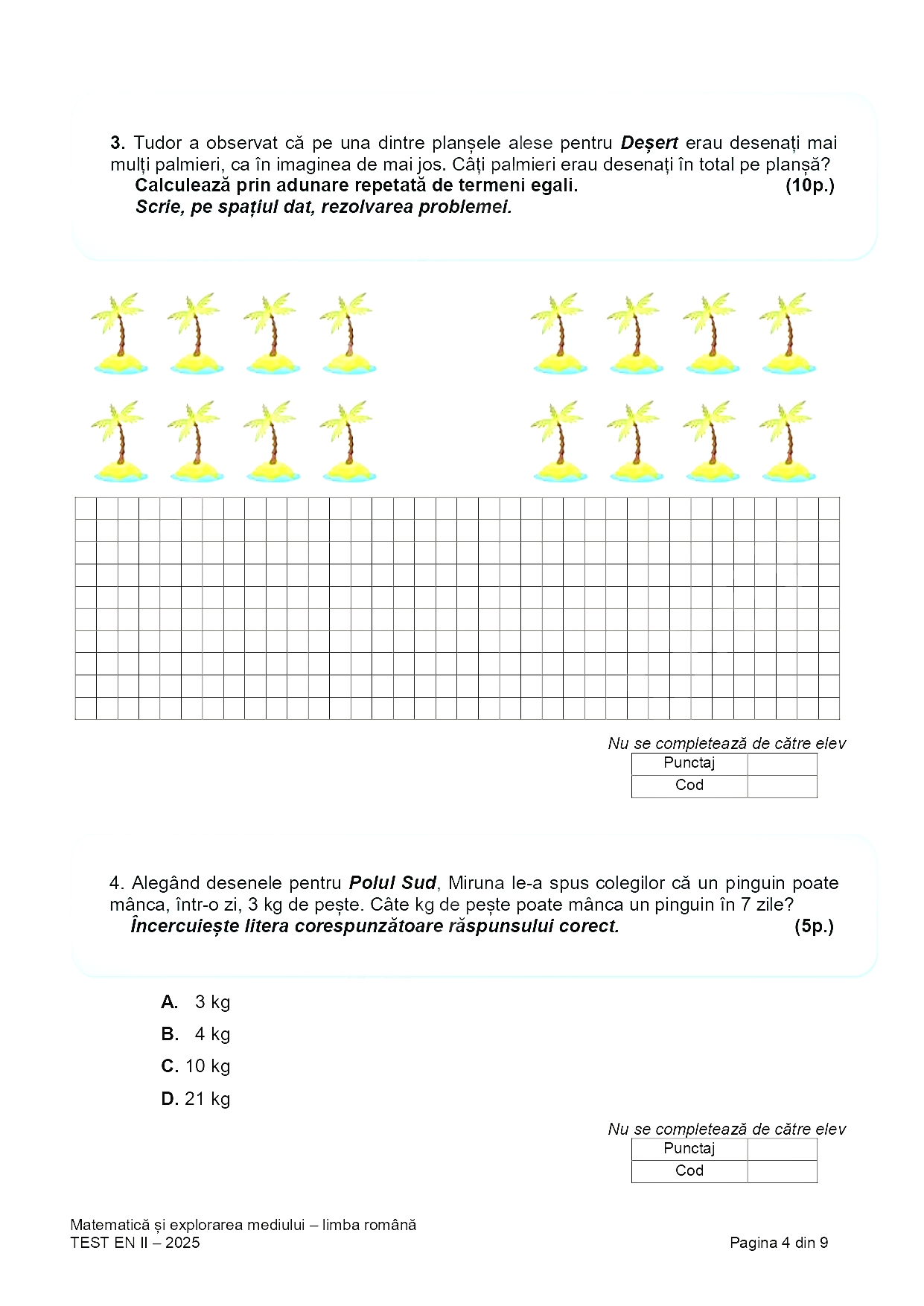 Subiectele pe care le-au primit elevii la Matematică și Explorarea Mediului: