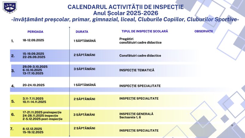 Calendar inspecții București – an școlar 2025-2026