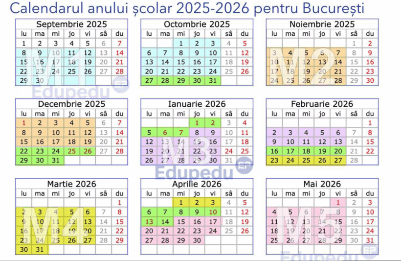 • Pentru clasele a XII-a zi, a XIII-a seral şi frecvenţă redusă, anul şcolar are o durată de 34 de săptămâni de cursuri și se încheie la data de 5 iunie 2026;