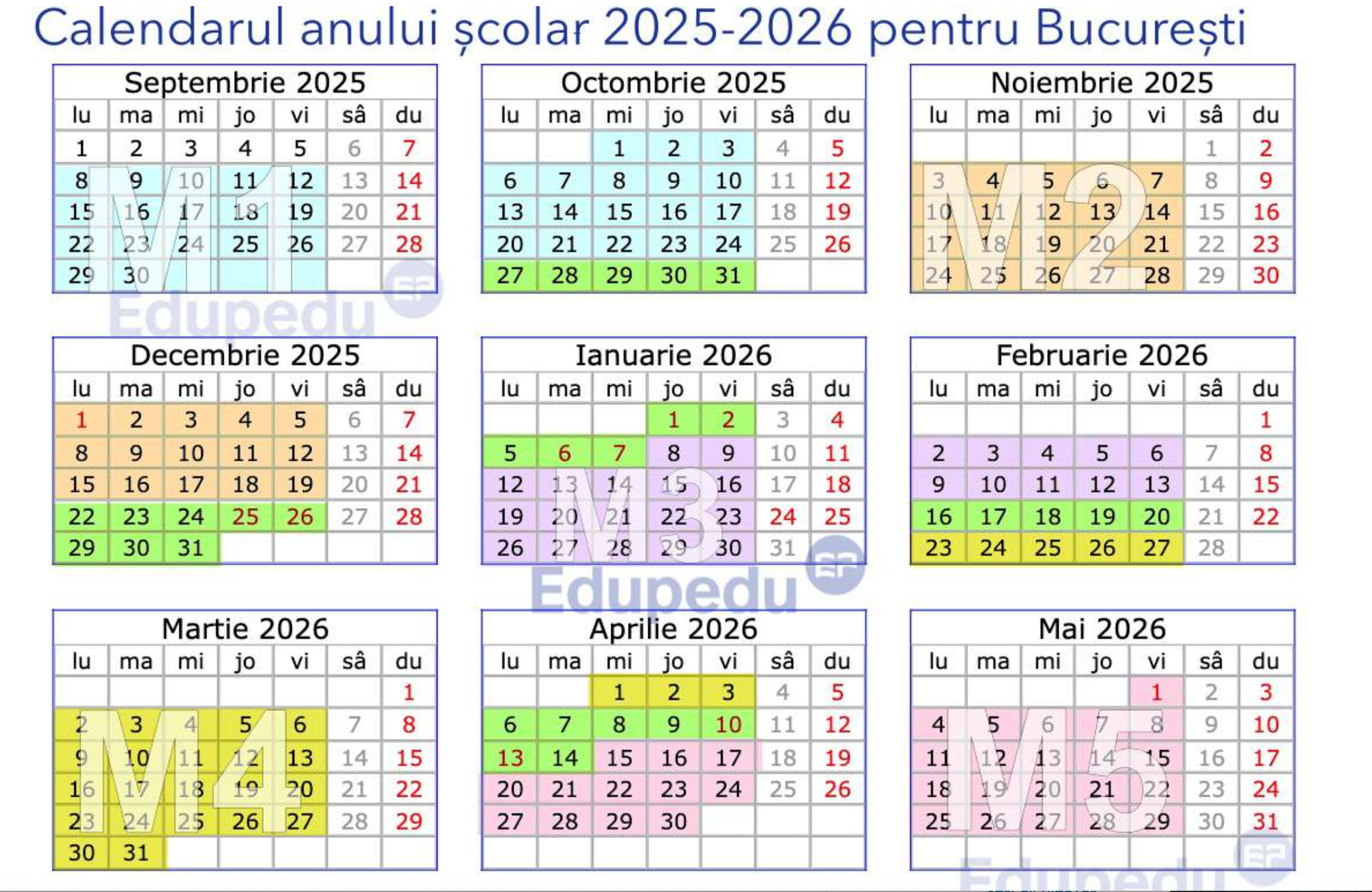 • Pentru clasa a VIII-a, anul şcolar are o durată de 35 de săptămâni de cursuri și se încheie la data de 12 iunie 2026;