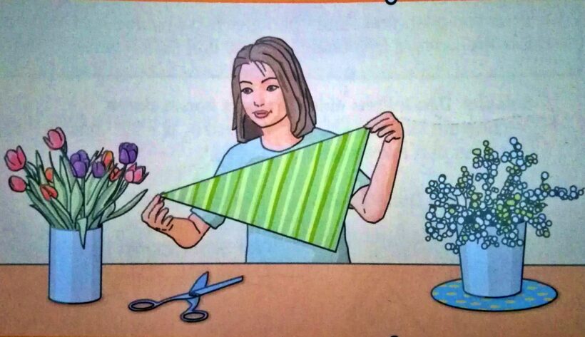 În faza următoare, copiii au de construit ei înșiși o mediatoare, o activitate pe care o vor avea de făcut de multe ori în timpul școlii, fără a mai îndoi, desigur, foaia.