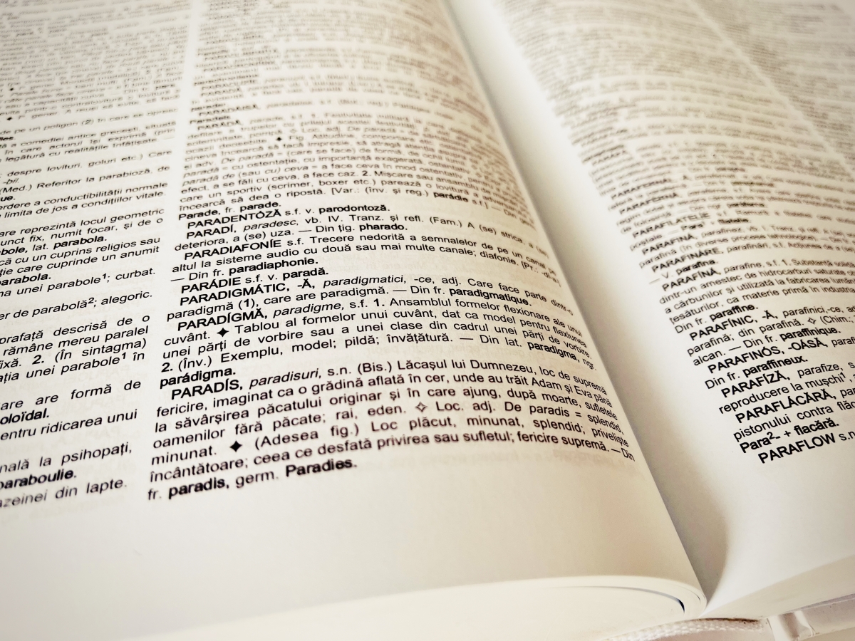 Potrivit celei mai recente ediții a Dicționarului Explicativ al Limbii Române (DEX), cea din 2016 de la Editura Univers Enciclopedic, paradigmă, cu pluralul paradigme este un substantiv feminin care are următoarele sensuri: „1. Ansamblul formelor flexionare ale unui cuvânt. Tablou al formelor unui cuvânt, dat ca model pentru flexiunea unei părți de vorbire sau a unei clase din cadrul unei părți de vorbire. 2. (Înv.) Exemplu, model; pildă; învățătură. – Din lat. paradigma, ngr. parádigma”.