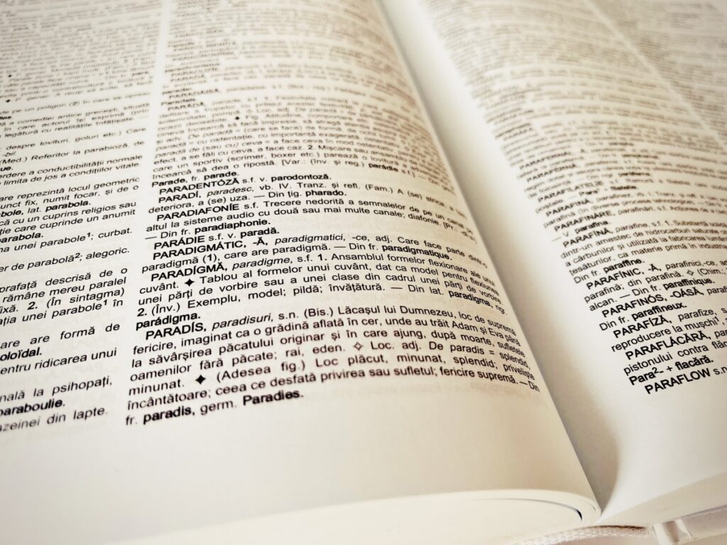 Potrivit celei mai recente ediții a Dicționarului Explicativ al Limbii Române (DEX), cea din 2016 de la Editura Univers Enciclopedic, paradigmă, cu pluralul paradigme este un substantiv feminin care are următoarele sensuri: „1. Ansamblul formelor flexionare ale unui cuvânt. Tablou al formelor unui cuvânt, dat ca model pentru flexiunea unei părți de vorbire sau a unei clase din cadrul unei părți de vorbire. 2. (Înv.) Exemplu, model; pildă; învățătură. – Din lat. paradigma, ngr. parádigma”.