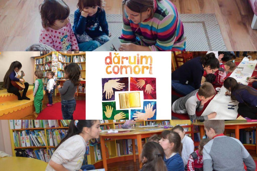 “Dăruim comori” înseamnă 30 de cărți primite gratuit de orice persoană care nu mai așteaptă să facă alții ceva pentru el și pentru societate, ci decide să acționeze. În schimbul celor 30 de cărți pentru copii, voluntarul se angajează să organizeze 2-3 ateliere pe lună în timpul cărora să le citească copiilor din comunitatea sa, a povestit Bianca Mereuță.