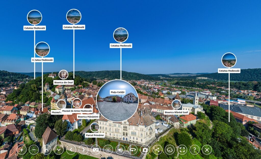 Cu ajutorul turului virtual, turiştii pot accesa obiectivele cele mai importante din Cetatea Medievală Sighişoara, cel mai bine păstrată cetate din Transilvania şi cea mai mare cetate medievală din Europa locuită fără întrerupere, înregistrată în patrimoniul UNESCO.