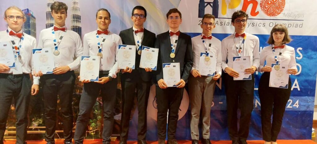 Cinci medalii de aur obținute de elevii români la a 24-a ediție a Olimpiadei Asiatice de Fizică, la Perak, în Malaezia, anunță Ministerul Educației. Au participat 208 concurenți din 28 de țări (27 țări din Asia-Pacific și România, cu statut de invitat). Elevii noștri au mai luat și două medalii de argin, plus o mențiune de onoare, conform sursei citate.