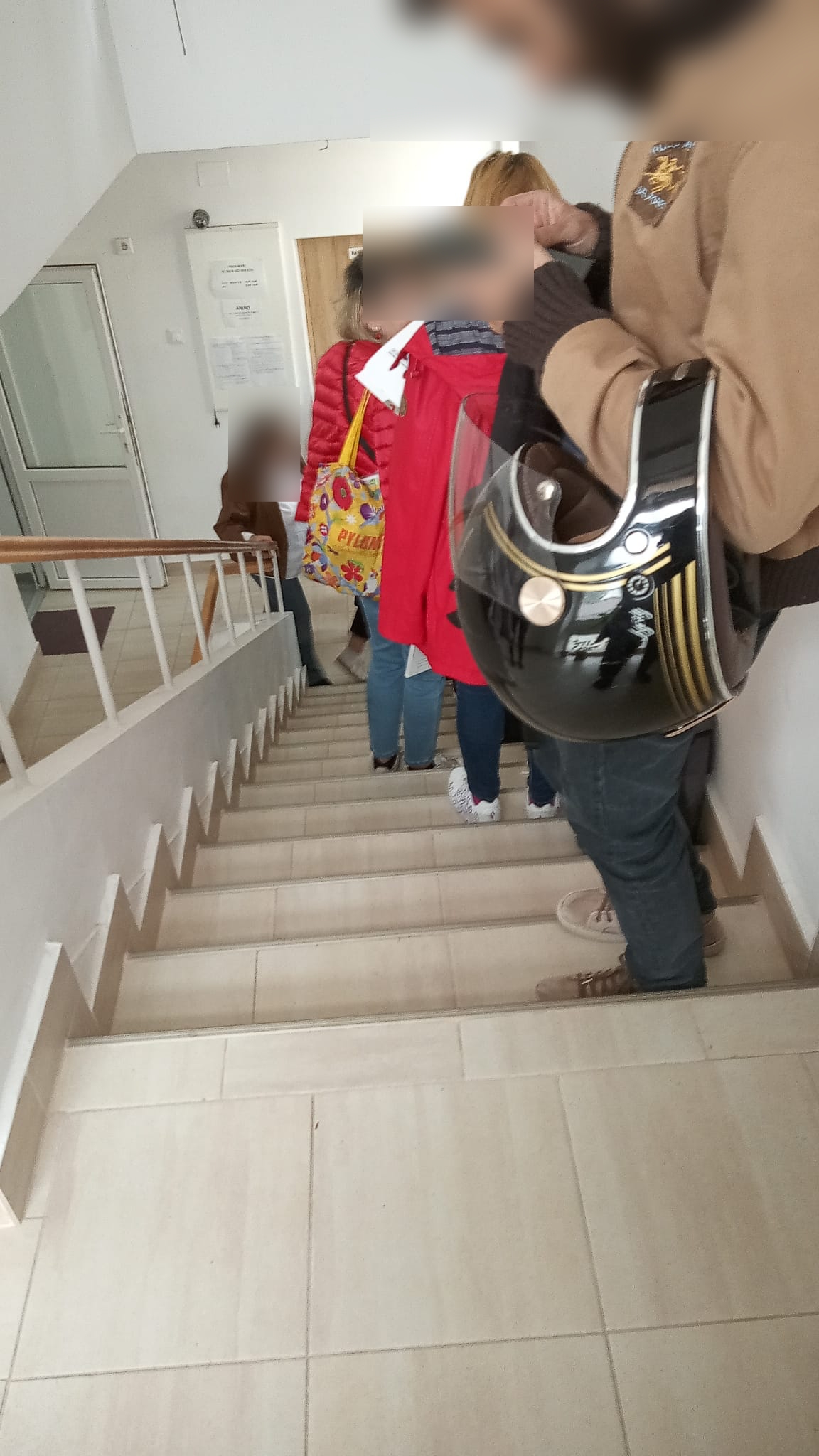 În imagini se observă cum candidații își așteaptă rândul în picioare pe hol, pentru înscrierea la concurs.