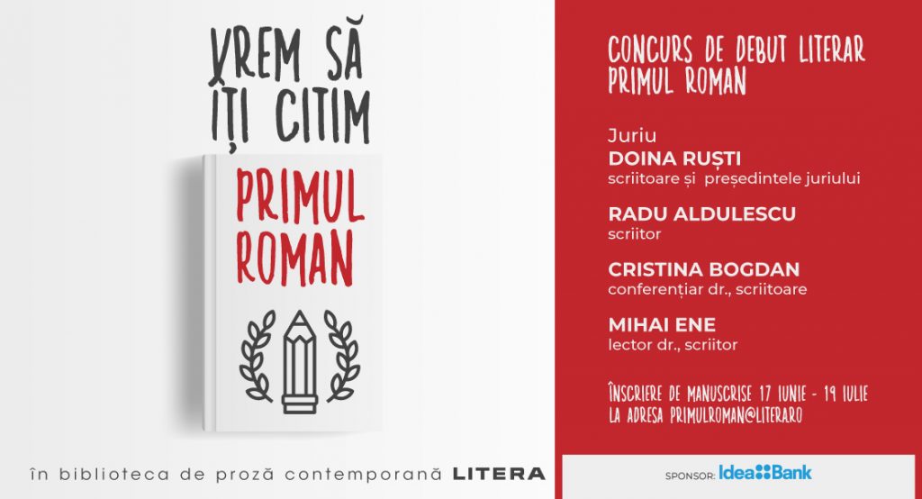 Scriitorii talentați și aflați la început de drum au ocazia ca primul lor manuscris să fie citit de scriitori români de prestigiu, premiat și publicat în cadrul concursului „Primul roman”, organizat de Editura Litera în parteneriat cu Idea::Bank. Se desfășoară în perioada 17 iunie – 13 septembrie 2021, iar textele se pot trimite până pe 19 iulie. Fișa de participare se descarcă de aici, iar regulamentul se poate citi aici.
