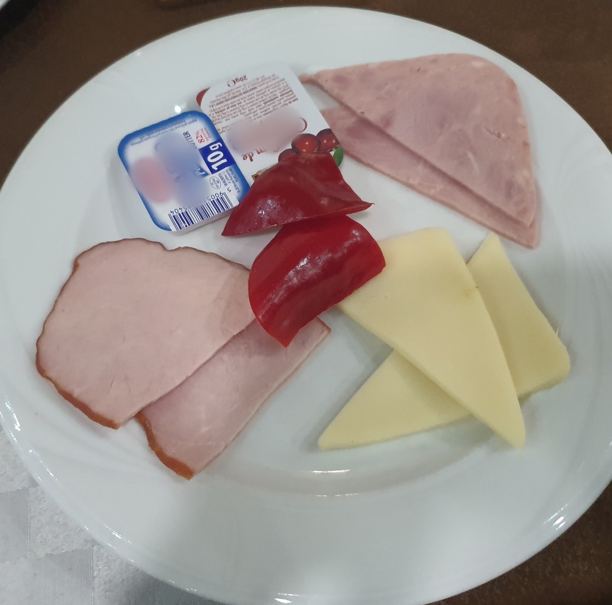 „La micul dejun, am fost serviți cu câte 2 felii de șuncă presată, 2 de cașcaval și 2 felii de ardei, pâine, margarină și dulceață. Mesele dimineților următoare au fost asemănătoare.