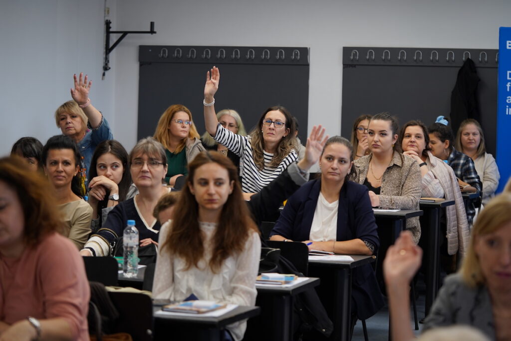 Ciprian Fartușnic, cercetător științific la Institutul de Științe ale Educației (ISE), a vorbit cu profesorii prezenți la ambele evenimente despre ce înseamnă centrarea pe competențe și ce ar trebui să urmărească profesorii, precum și importanța legăturii unui discipline cu celelalte: „De foarte multe ori, centrarea aceasta pe competențe înseamnă să ne uităm mai atent la ce și cum învață fiecare copil și, mai ales, să aduc un pic de aer curat, proaspăt în activitățile de învățare. (…) A da sarcini și a-i pune pe copii în situații de învățare în care folosesc aplicații, în care folosesc internetul reprezintă niște contexte în care acești copii au un câștig.“