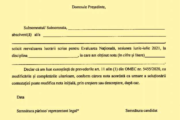 Descarcă Cererea tip de contestație pentru Evaluarea Națională 2021
