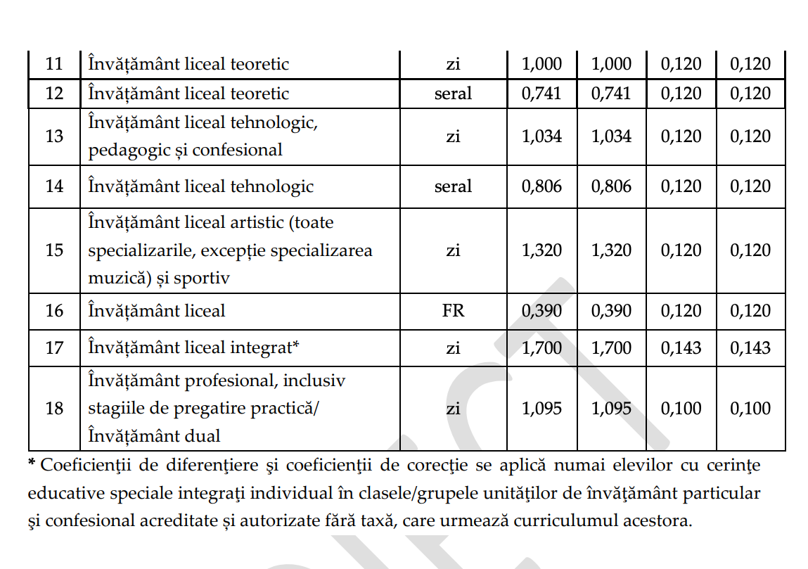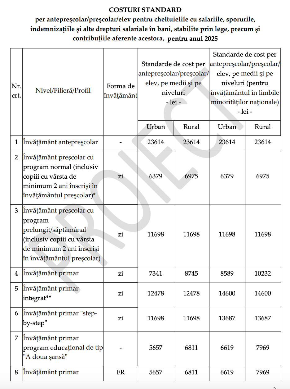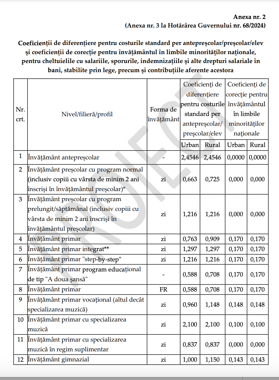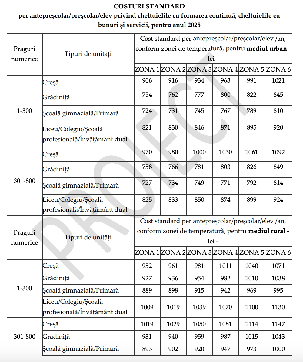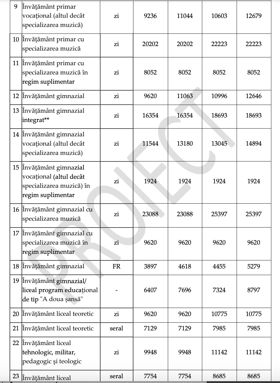DOCUMENT DESCARCĂ Proiectul de modificare privind aprobarea normelor metodologice pentru determinarea costului standard per elev: