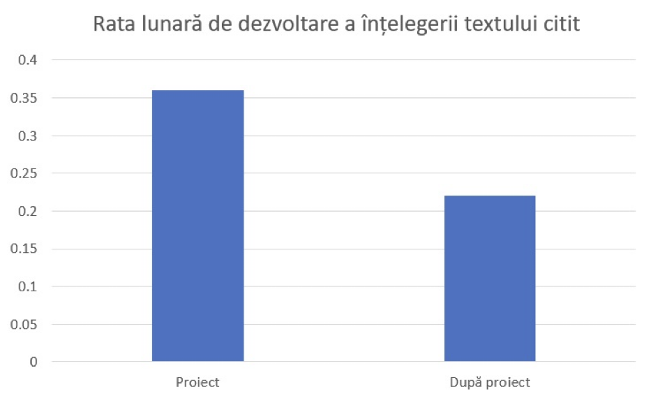 Efecte similare de transfer s-au observat și la înțelgerea textului citit. Acest lucru este deosebit în contextul în care pe parcursul desfășurării proiectului, atât elevii din grupa experimentală cât și cei din grupa de control au desfășurat activități orale.