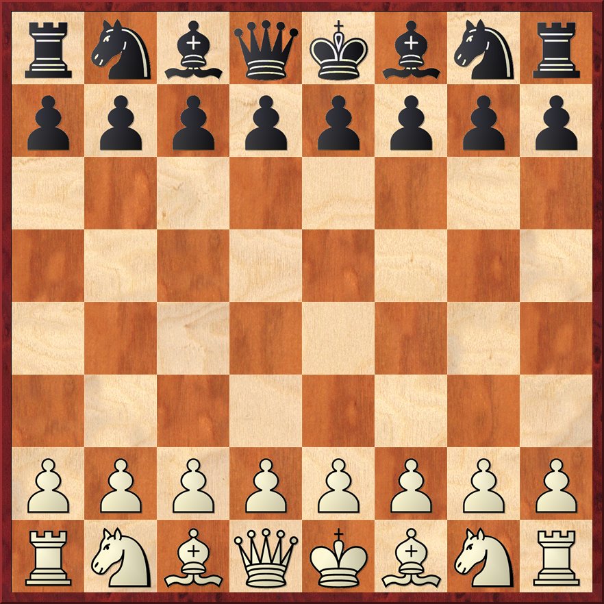 1. Aranjarea tablei: fiecare jucător are pătratul de culoare deschisă (alb) în partea din dreapta jos. Turnurile se așază în colțuri, caii se așază lângă turnuri, urmați de nebuni și în cele din urmă se așază regina, întotdeauna pe propria ei culoare (regina alba pe alb, regina neagră pe negru), iar regale se așază pe pătratul rămas liber. Al doilea rând este ocupat numai de pioni.