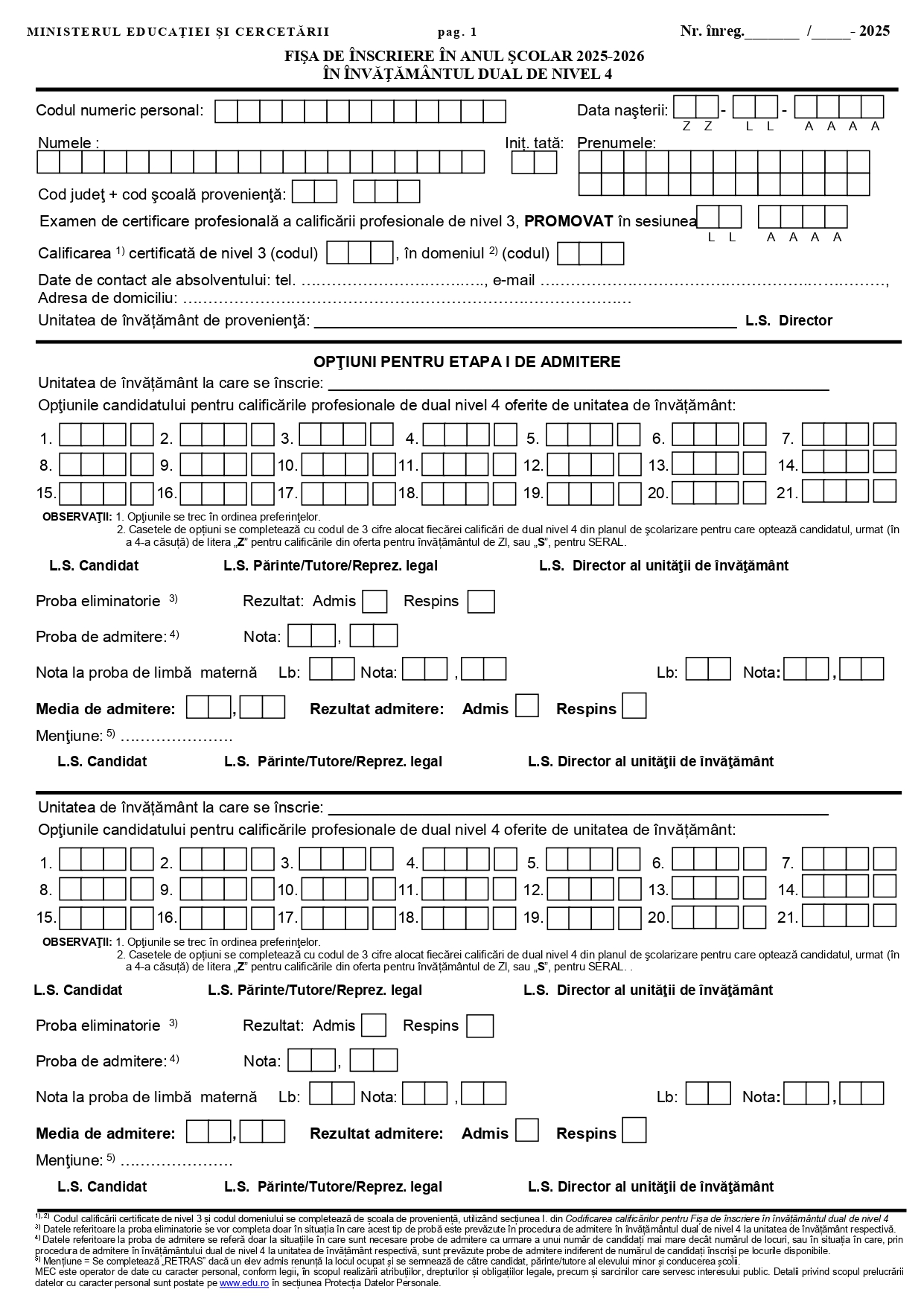 Fișa de înscriere în învățământul dual de nivel 4 – 2025