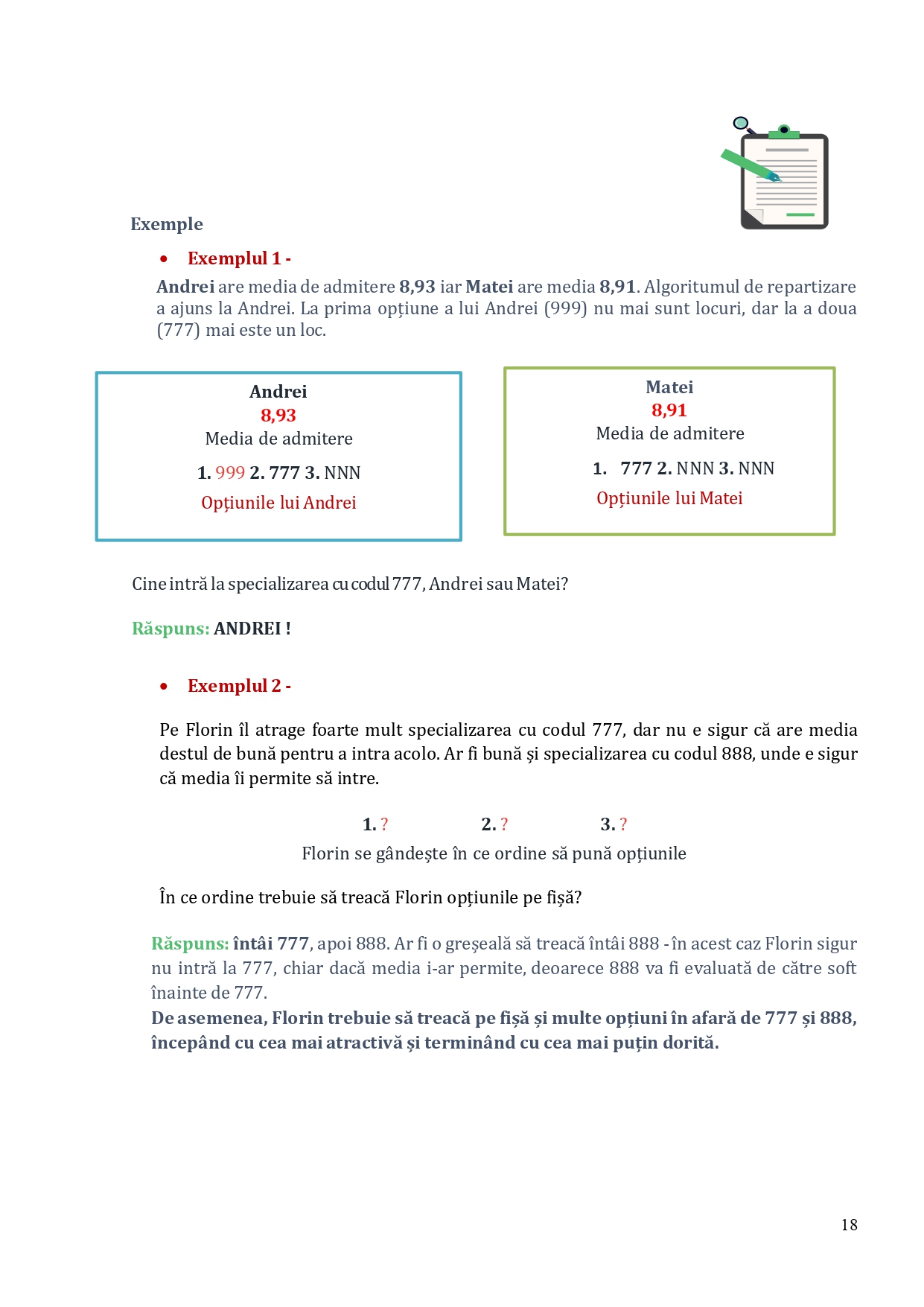Pentru fiecare elev, este examinată la început prima opțiune de pe fișă. Mai sunt locuri?