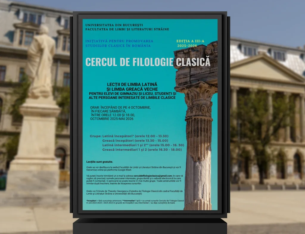 Cercul de Filologie Clasică al Facultății de Limbi și Literaturi Străine (FLLS) a Universității din București (UB) își redeschide porțile pe 4 octombrie 2025, anunță organizatorii. Inițiativa se adresează elevilor de gimnaziu și liceu, studenților și altor persoane interesate de limbile clasice, potrivit unei informări a UB.