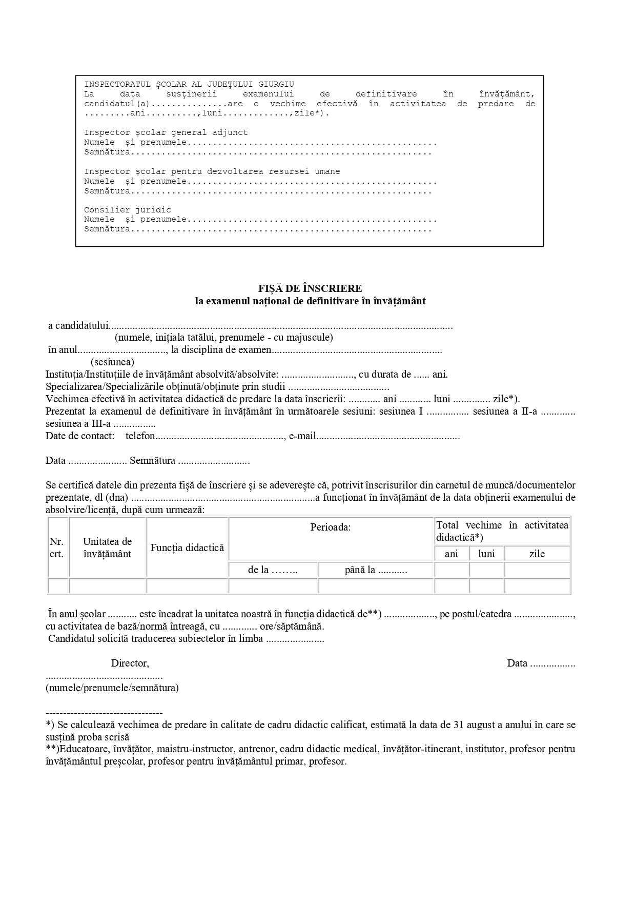 Model fișă de înscriere la definitivat 2026 – ISJ Giurgiu