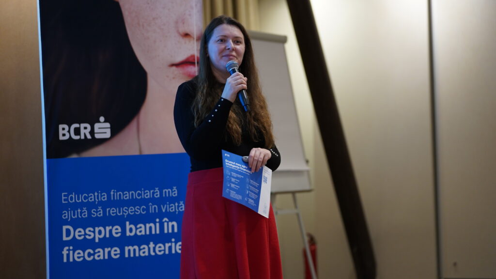 Claudia Oprescu: Folosim deja AI în abordarea educației financiare cu ajutorul roboțelului Pepper, profesor la Școala de Bani și ne dorim să accelerăm acest proces pentru că am observat că elevii sunt foarte deschiși și interesați să învețe noțiuni mai complicate legate de bani atunci când combinăm educația cu tehnologia. AI-ul ne poate ajuta în zona de educație transdisciplinară.