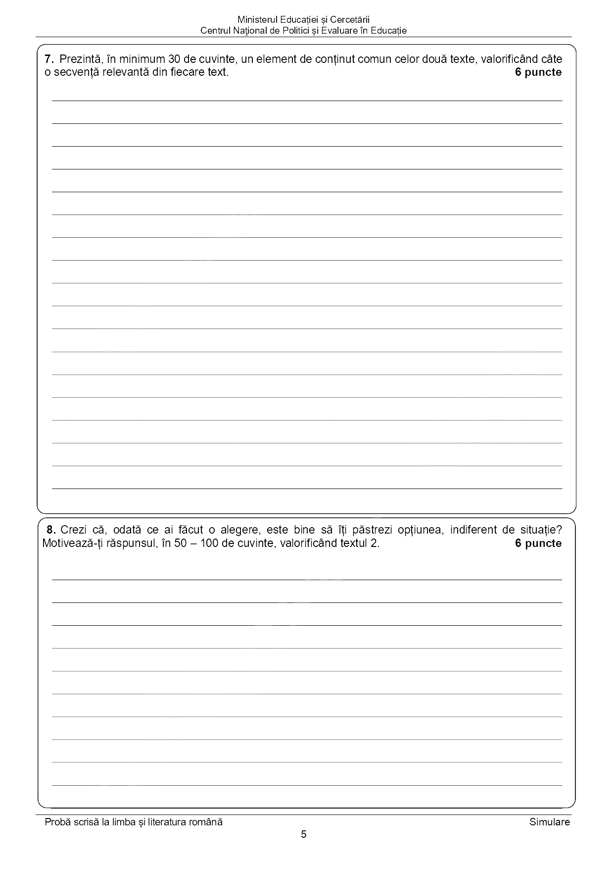 Răspuns elev: Mi se pare că a fost destul de greu. A picat, spre exemplu, la subiectul al II-lea liric, dar simulările ne ajută să vedem unde greșim și avem timp până la vară să ne corectăm greșelile.