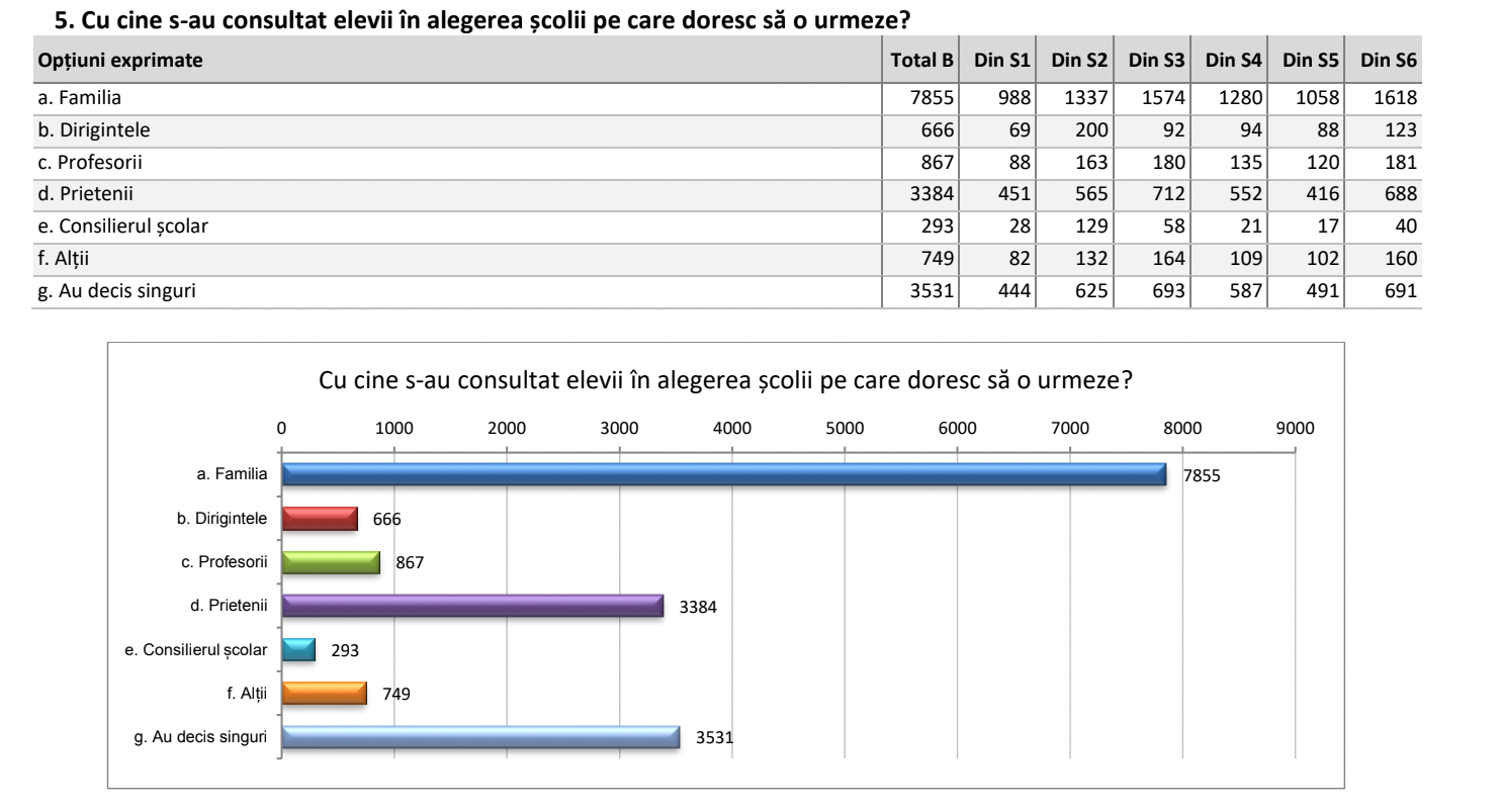 Au răspuns 10.014 elevi, reprezentând 61,4% din totalul elevilor înscriși și 75,83% din totalul opțiunilor din platformă.