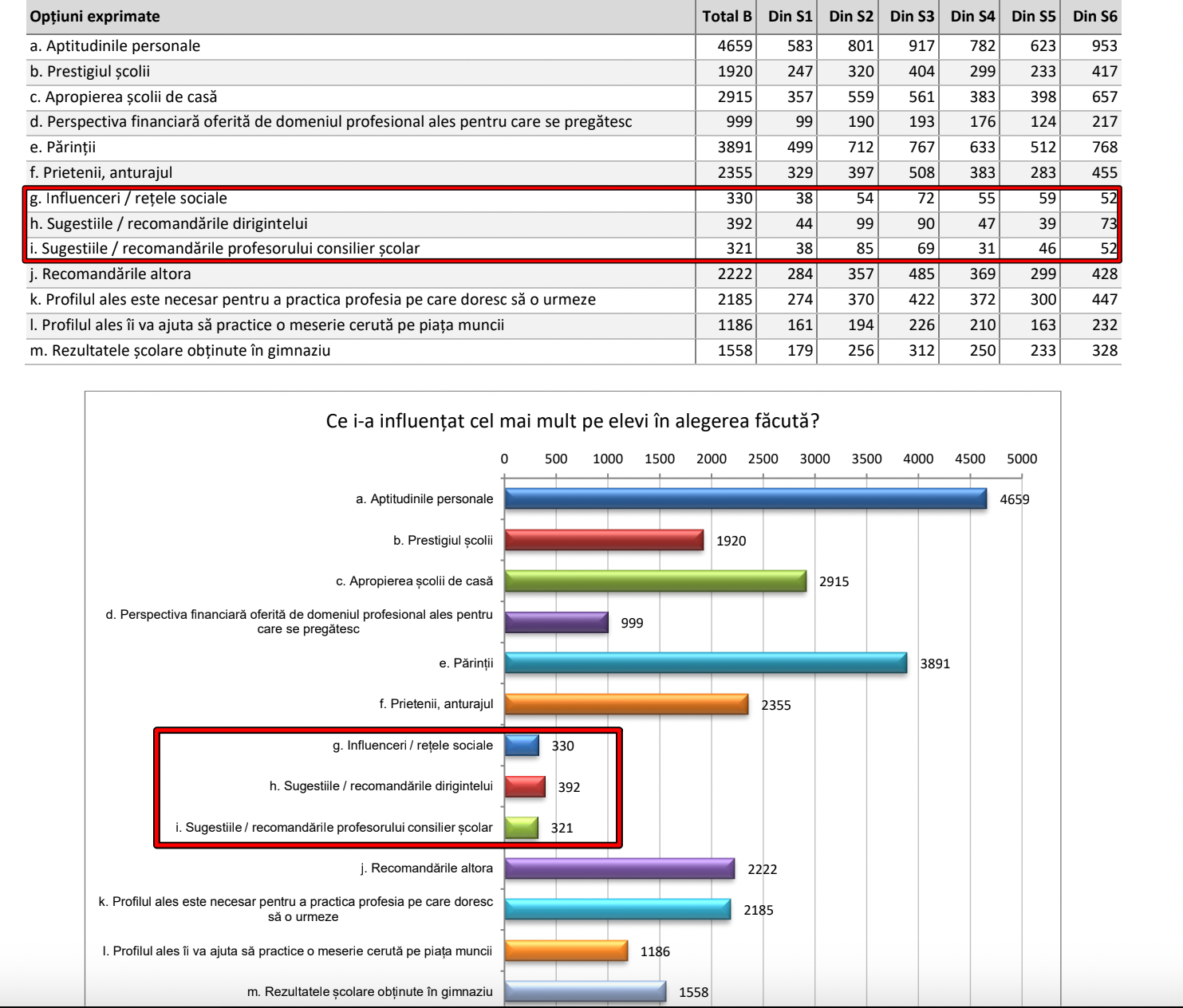 De remarcat că anul acesta, a fost introdus un răspuns nou la întrebarea: „Ce i-a influențat cel mai mult pe elevi în alegerea făcută?„: influencerii și rețelele sociale.