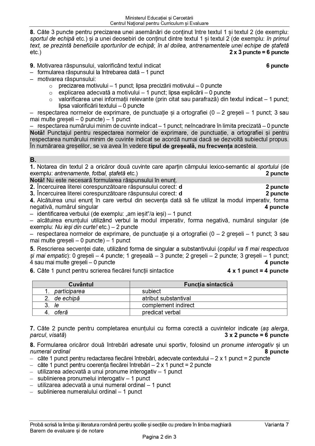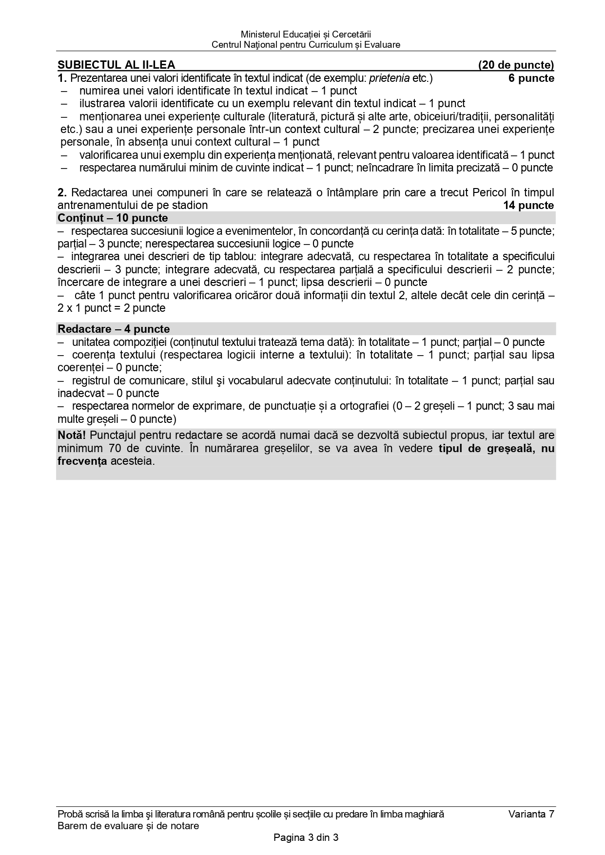 Subiecte date la Limba și literatura română pentru școlile și secțiile cu predare în limba maghiară: