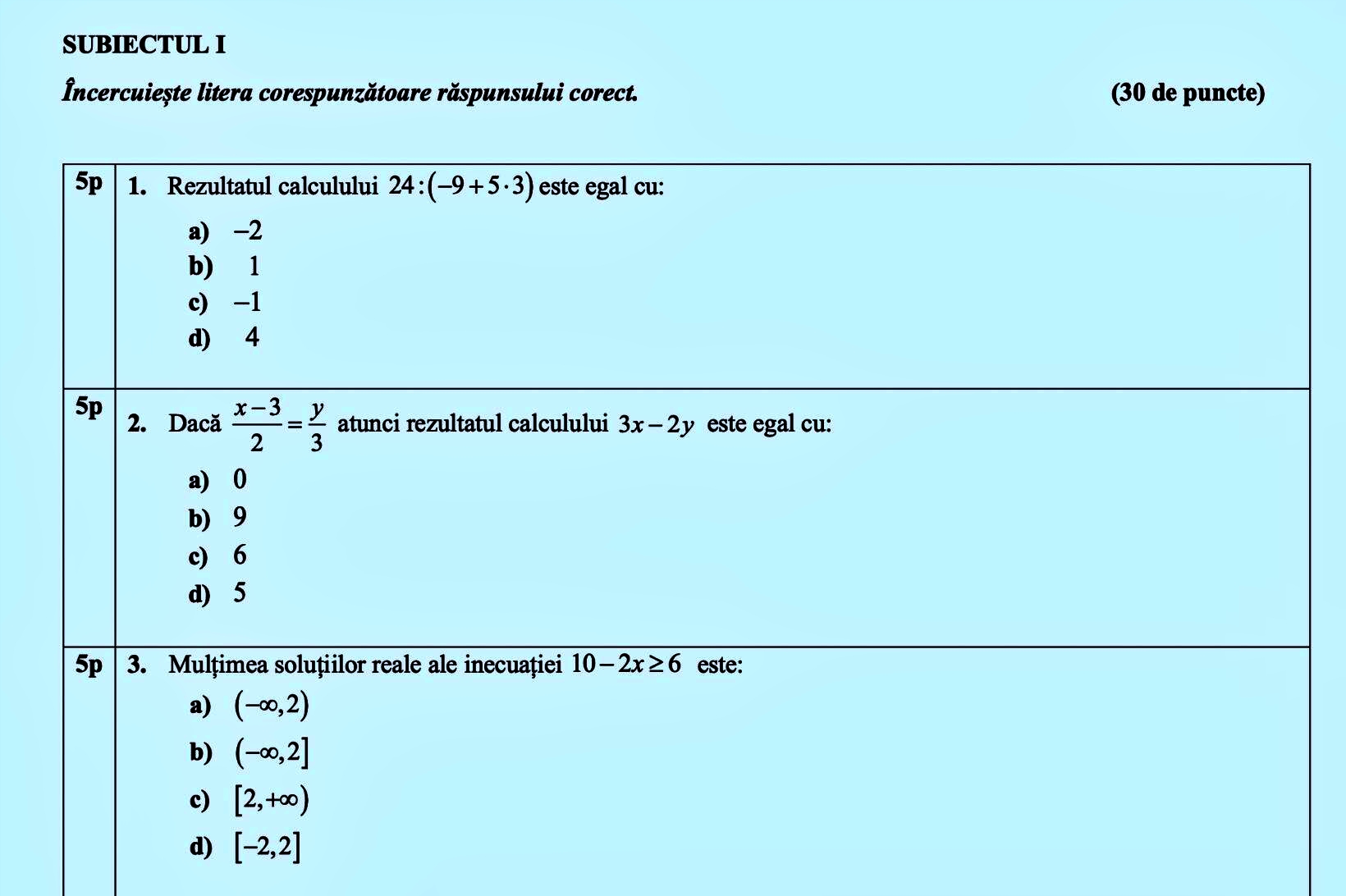 Test de antrenament la Matematică pentru Evaluarea Națională 2025, publicat de Inspectoratul Școlar Sibiu. Subiectele propuse elevilor în luna ianuarie și baremele