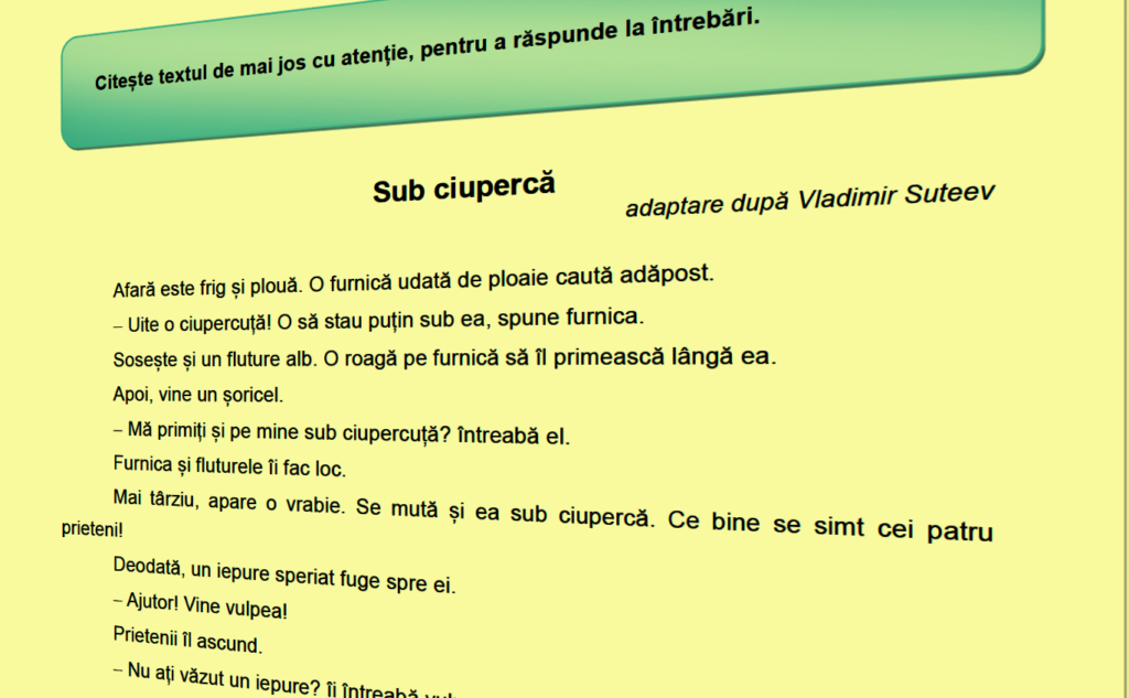 Limba română pentru elevii din minoritatea ucraineană – test 2: