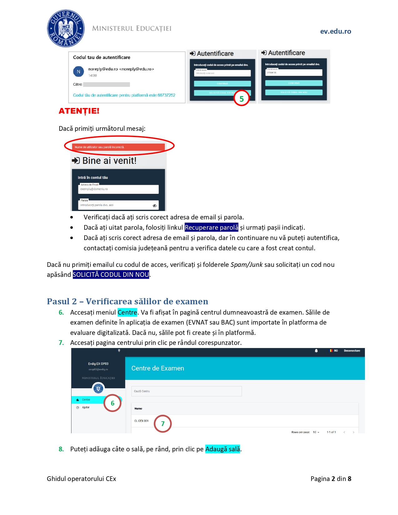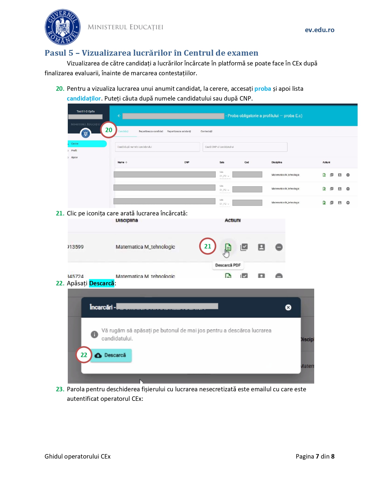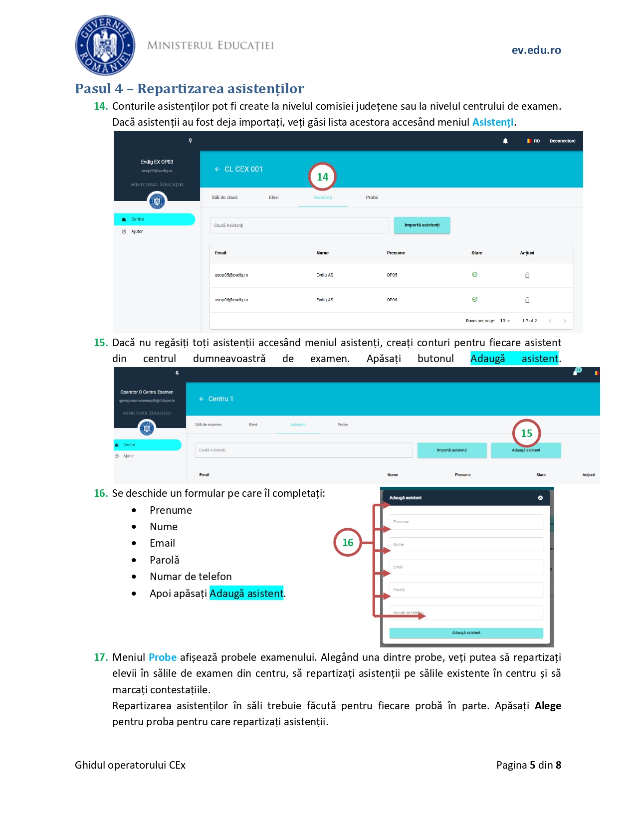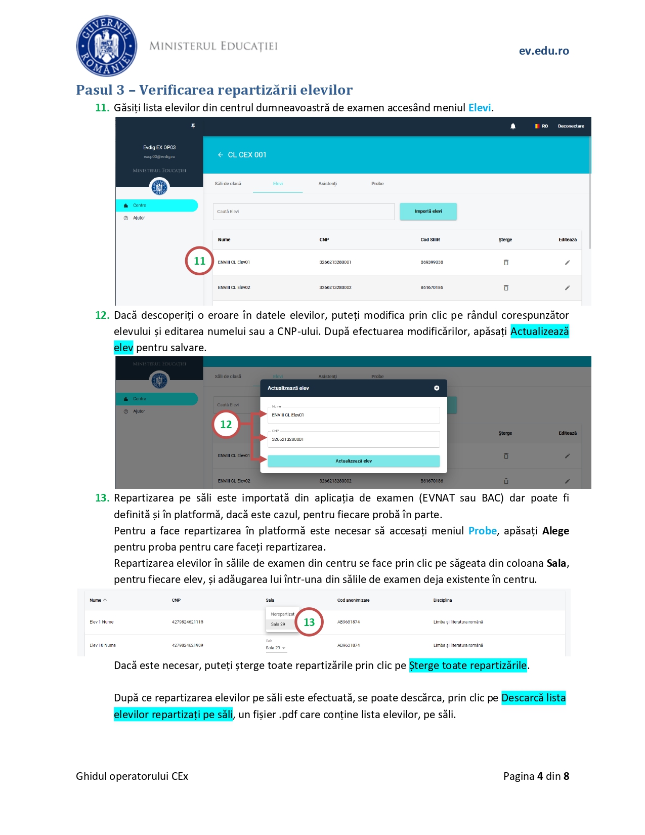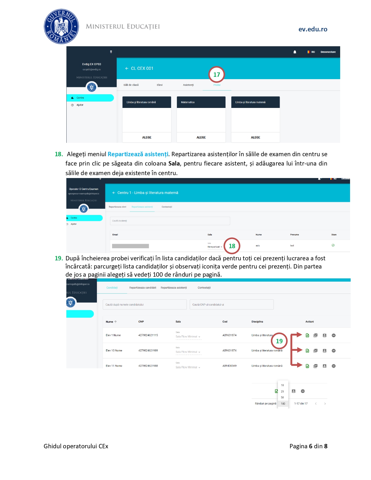 Conform ghidului, „ca operator al centrului de examen, în platforma de evaluare digitalizată, gestionați: