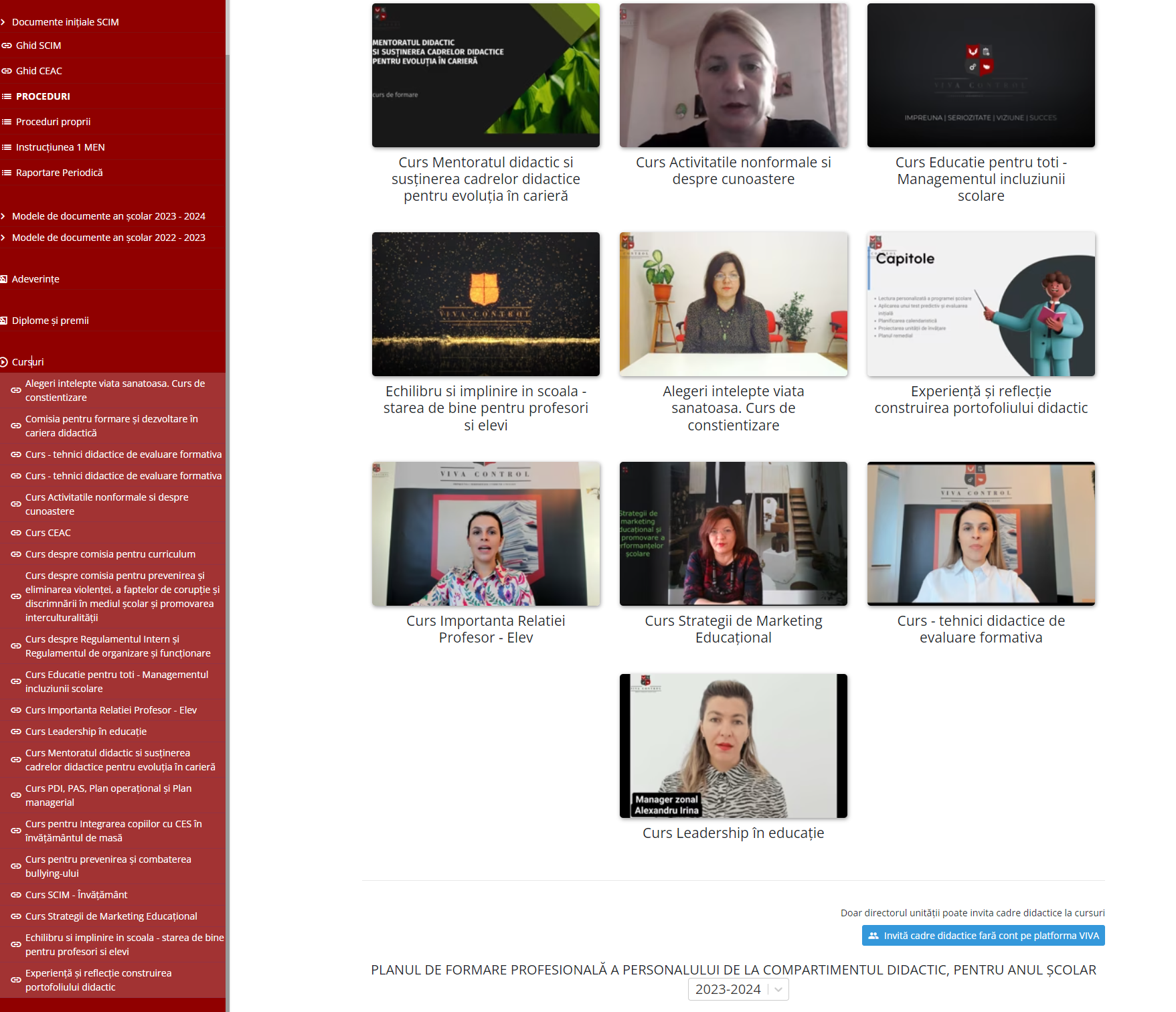 - Training asigurat la sediul unității de învățământ, dar și ulterior online.