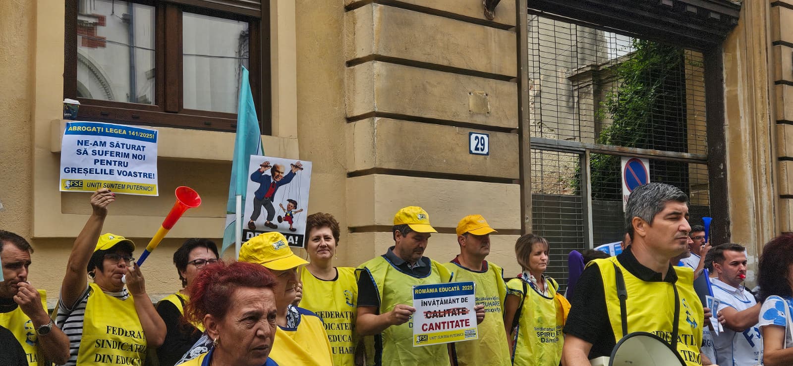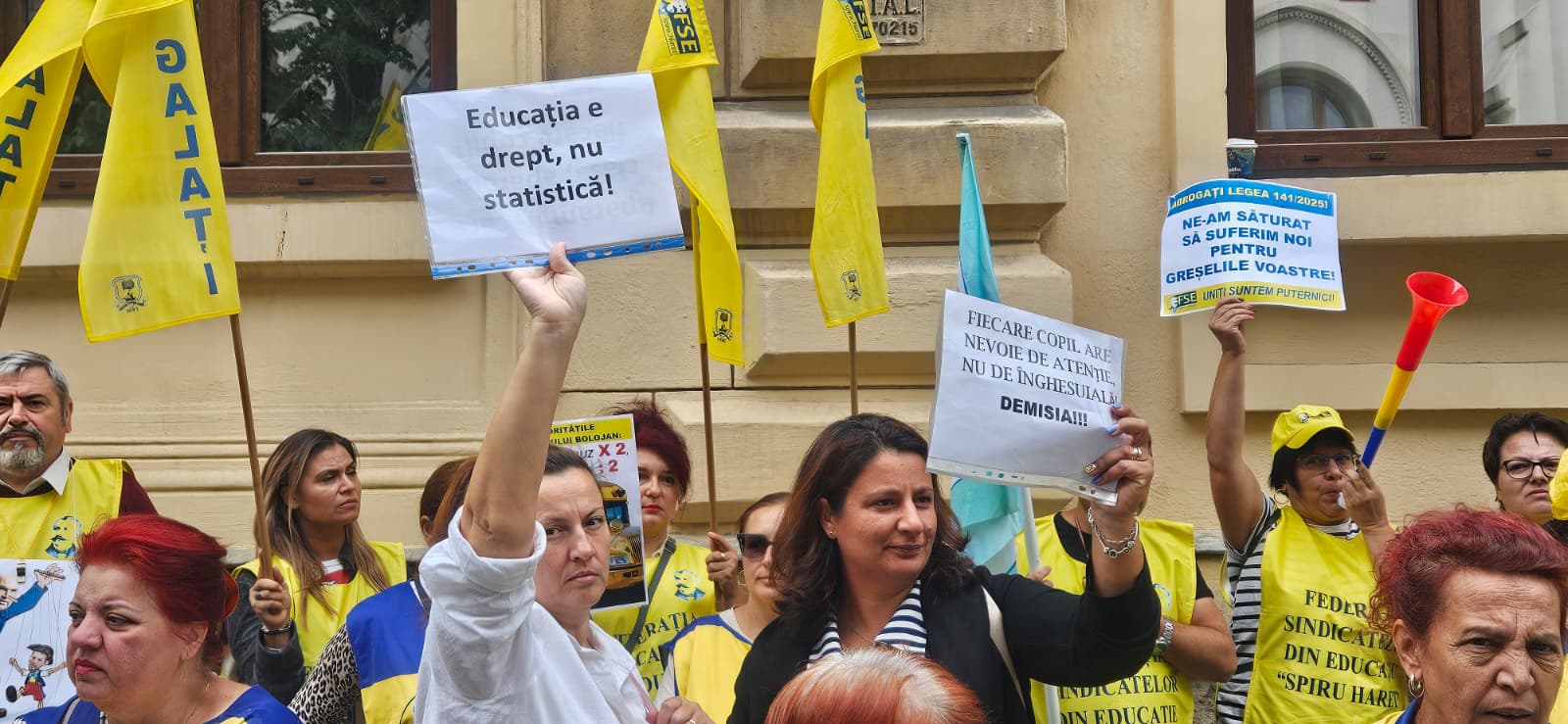 Federațiile sindicatelor din învățământ au organizat, luni dimineață, o nouă manifestație de protest față de Legea Bolojan și prevederile acesteia privind educația, în fața sediului Ministerului de resort. Este a 17-a zi de proteste, declanșate de sindicate în urmă cu 4 săptămâni.