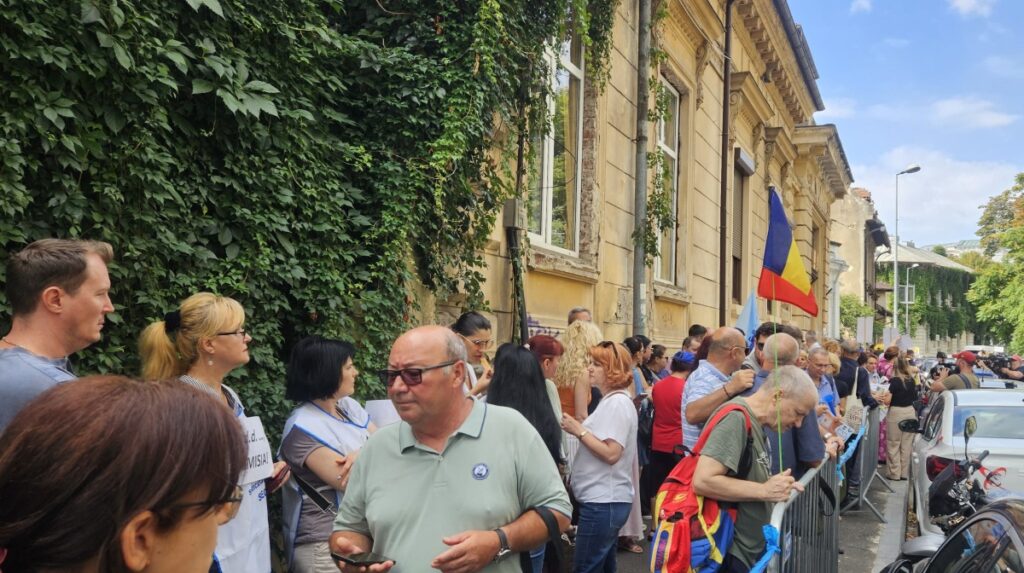 Câteva zeci de membri ai organizațiilor sindicale din Educație s-au adunat din nou, joi 31 iulie, în fața sediului Ministerului Educației și Cercetării, în cadrul seriei de proteste anunțate la începutul săptămânii la adresa Legii Bolojan, ce include măsuri precum creșterea normei didactice. „Demisia Daniel David” scandau participanții.